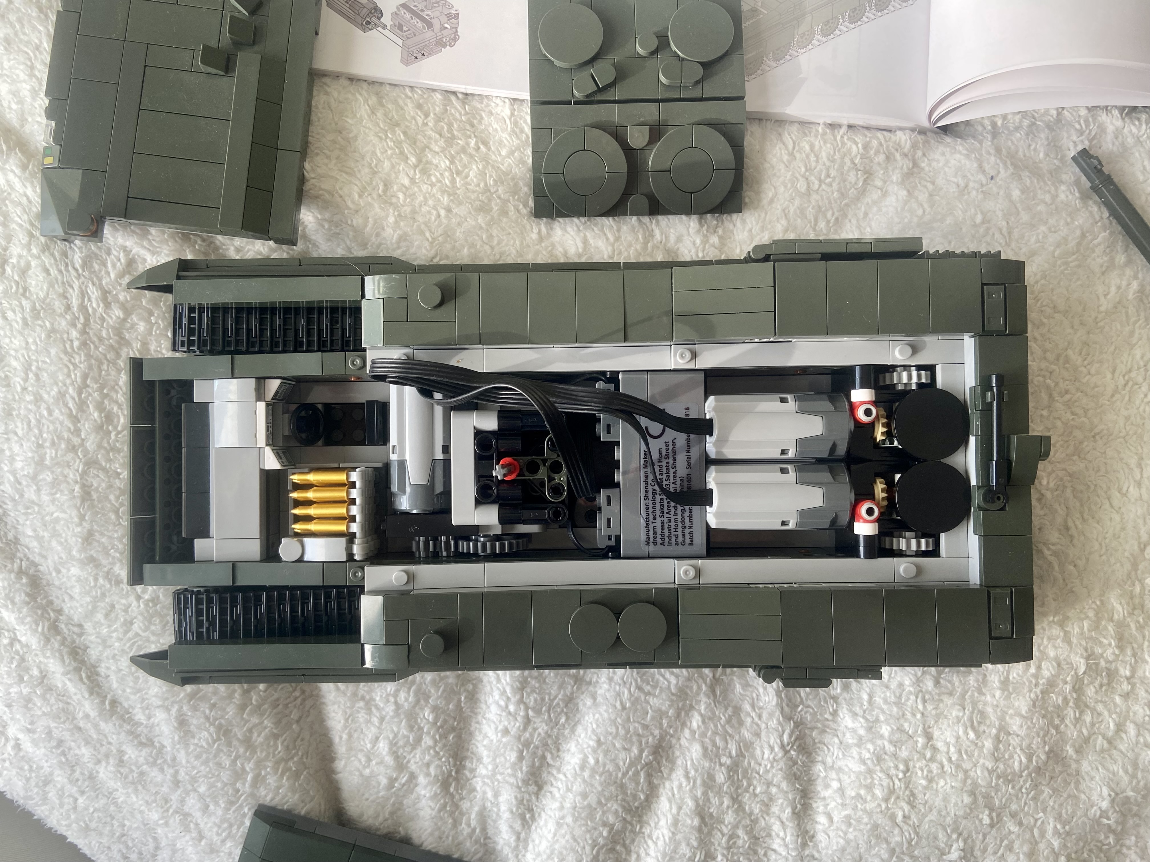 Really like 12GO kits for size, build quality and this kit looks amazing. Even better it convertible from static to radio control. I bought the static version from YWOBB (the kit is supplied with the conversion Lego) then bought the M motors, rechargeable battery pack and RC controller from a third party. Just a spot of superglue required for the skirts over the tracks otherwise the kit went together like a dream 😉