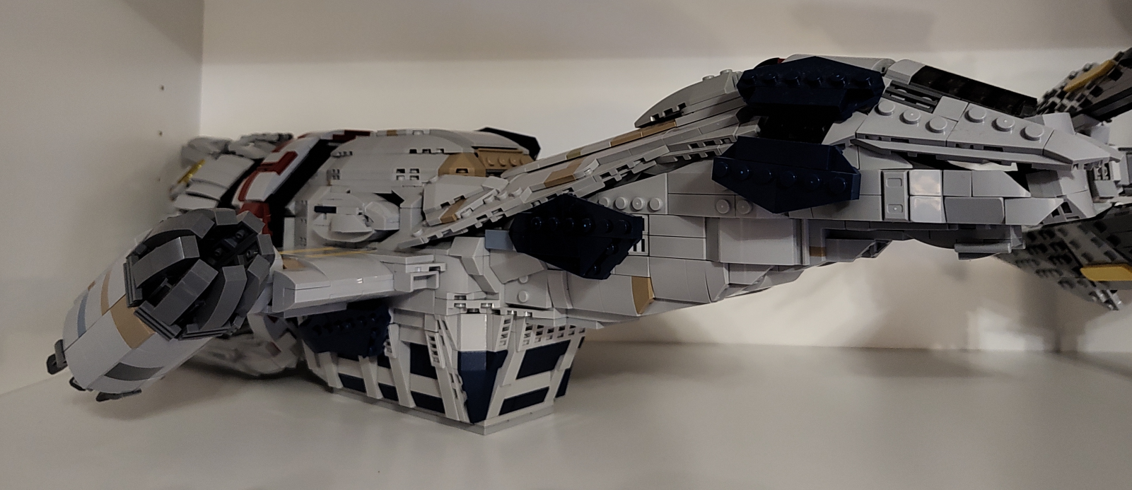 Personally my favorite MOC of the Firefly. Sturdy build. If you want to hang it from the ceiling, make sure to toughen up the neck a bit.