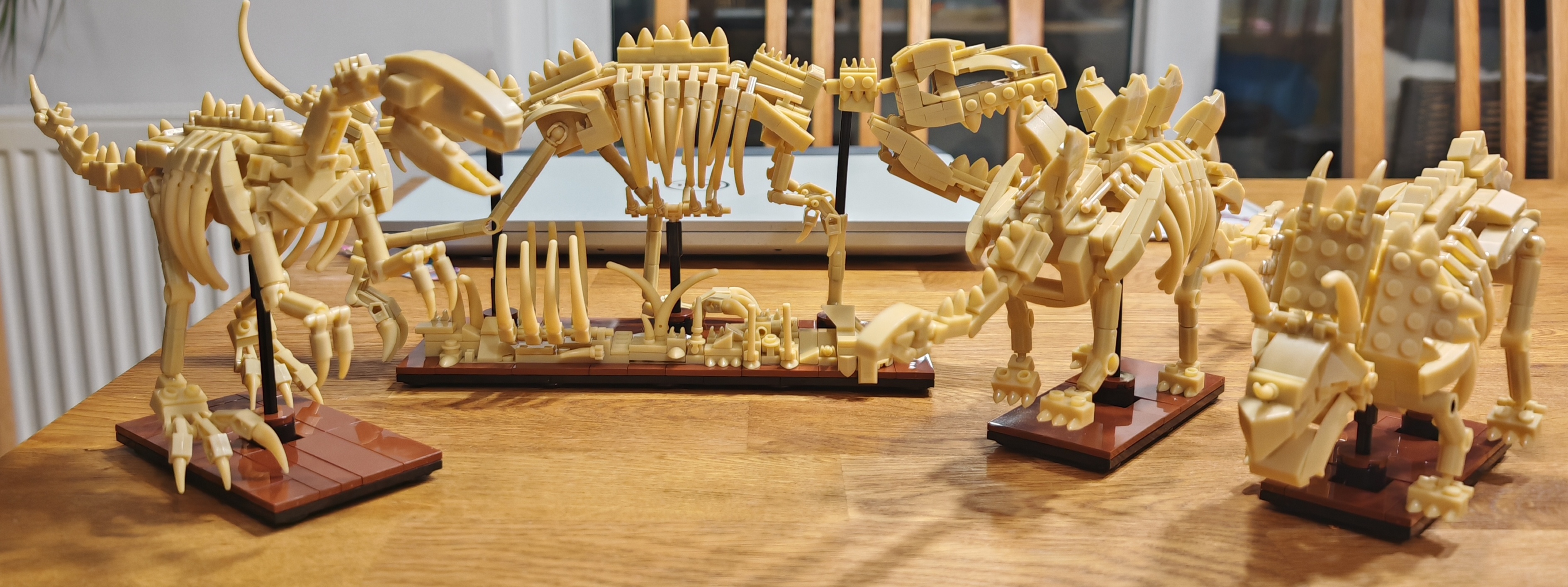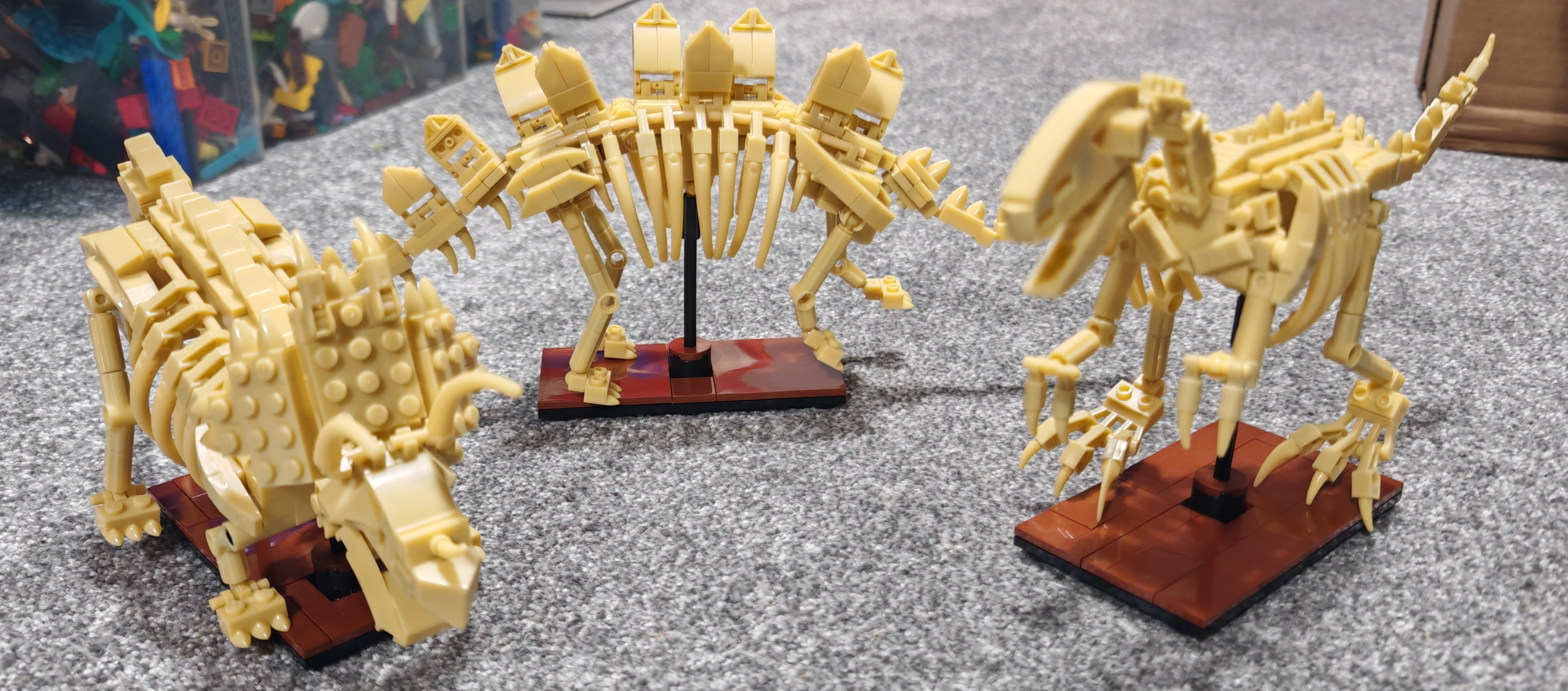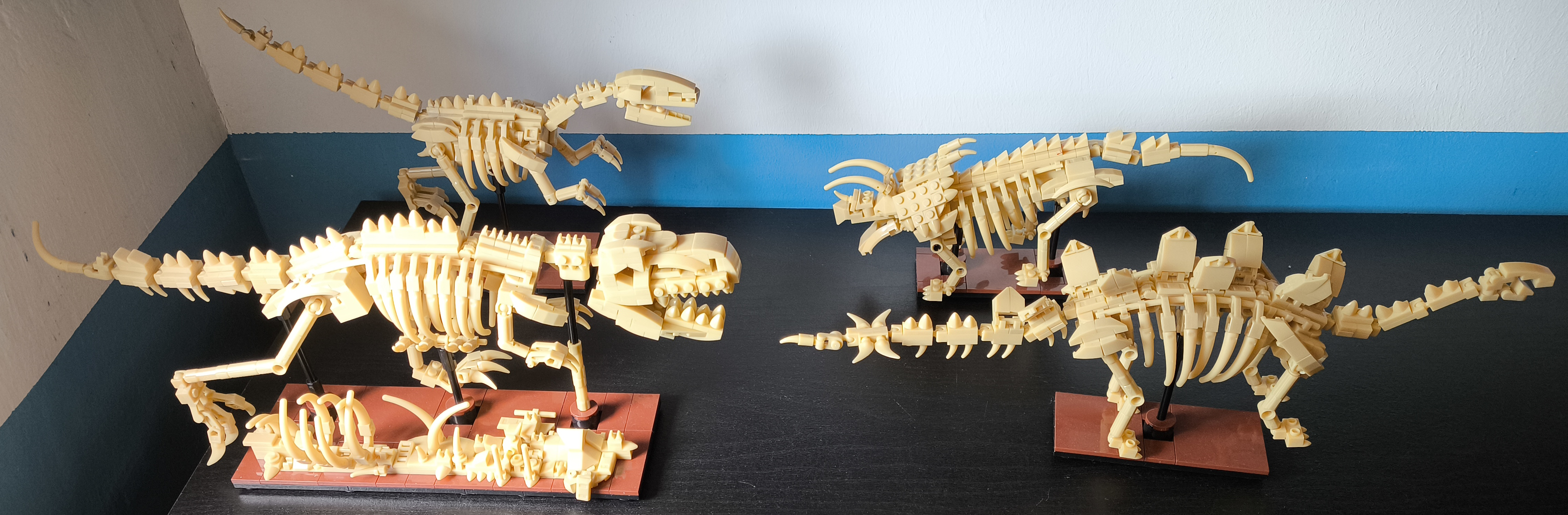 Big trex made from all 3 sets, instruction qr code on back of instructions booklets, just need to download and build off a device, nice final build, more substantial than others, quite a few bits left over, all look great together as a set