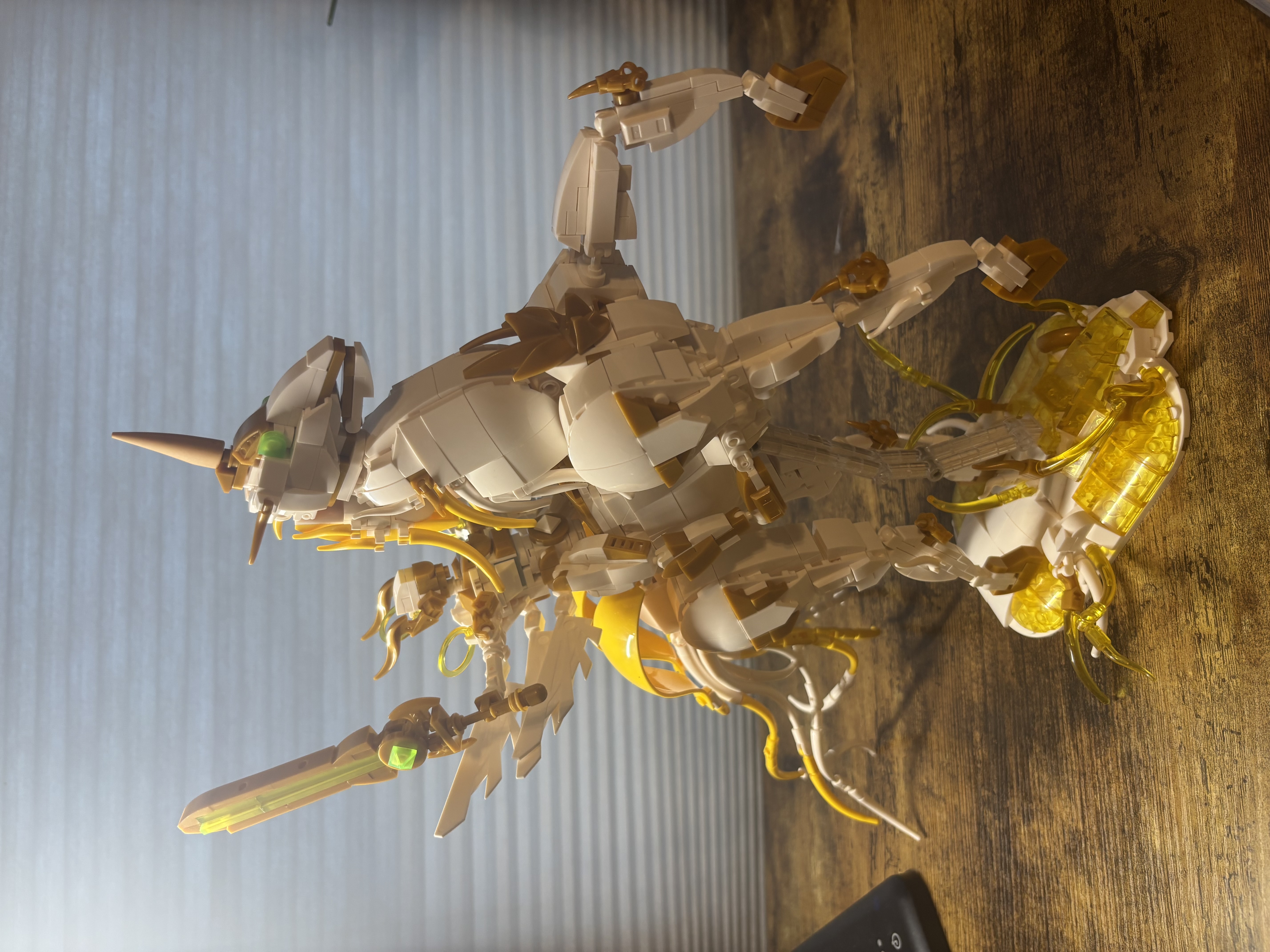 Wonderful build! Took about 2 weeks to arrive. It looks great. My only complaint is the base. There is a piece on the base that you connect one of the back hooves to in order to support the unicorn, but it’s really easy for the hoof to unattach, and if you dont adjust the unicorn right it slouches to one side. There should really be another piece to support the other back leg. I’d still give this 5 stars though.