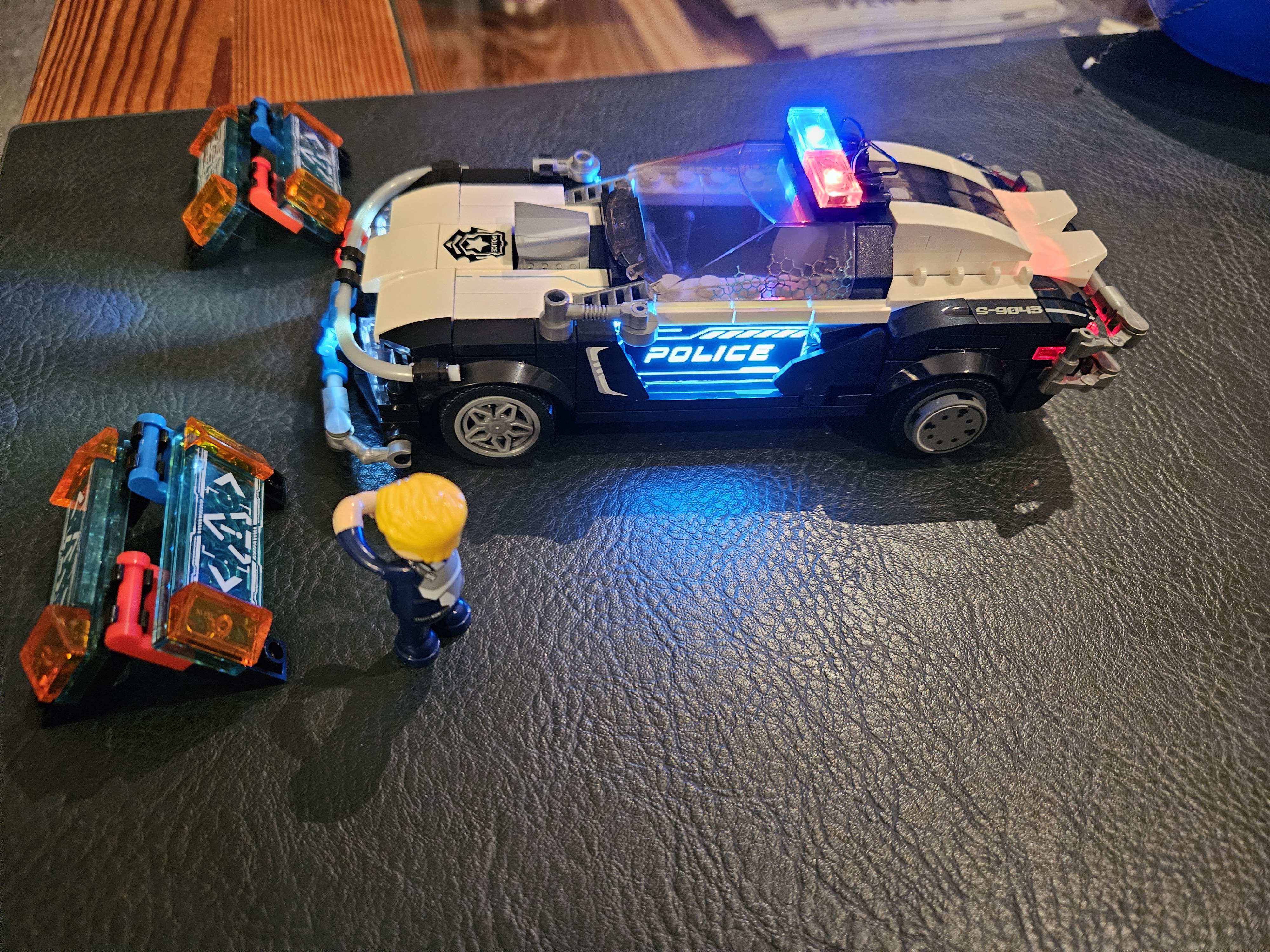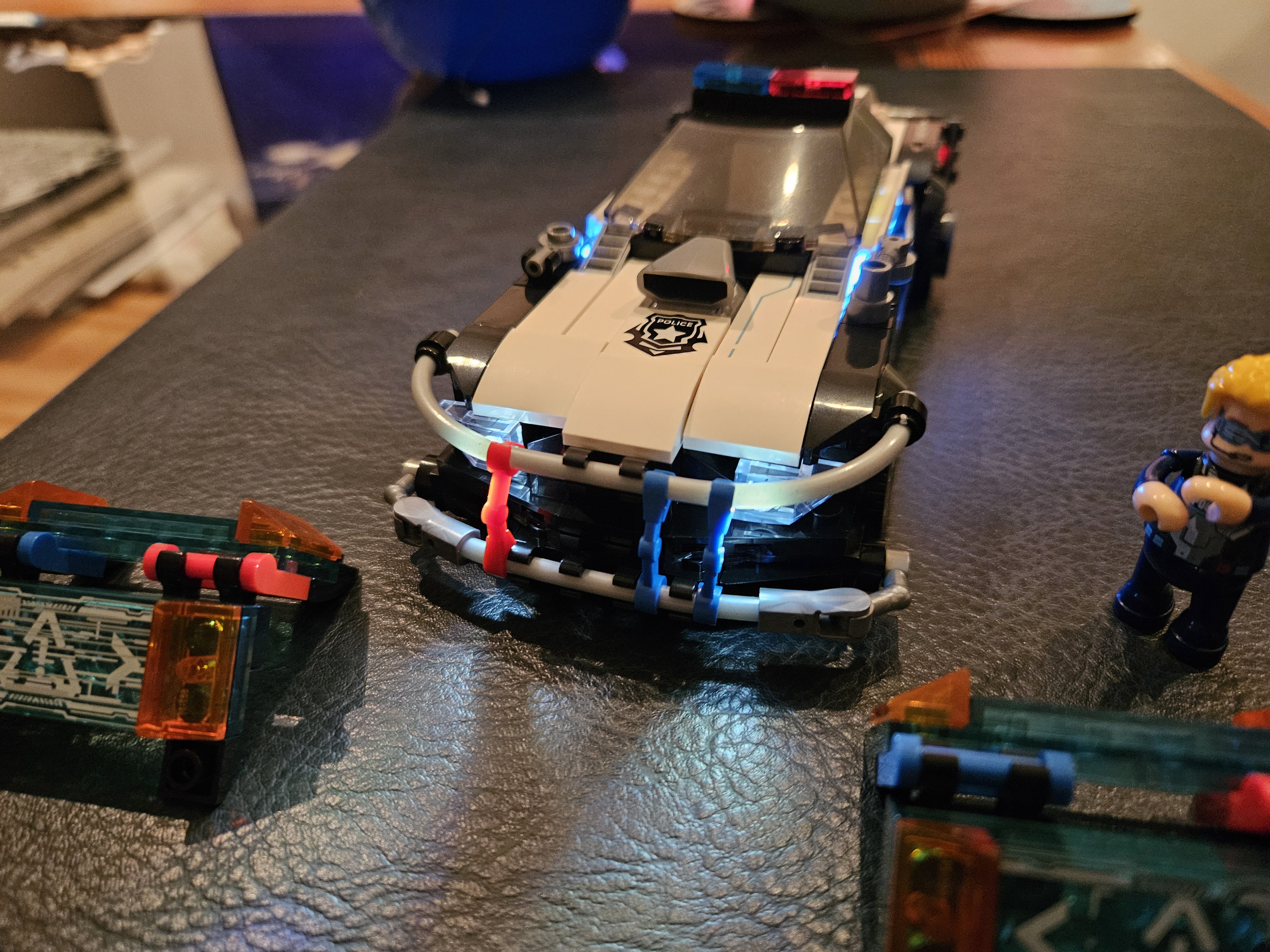 very cool 8 stud car with stunning lightning kit. if you use a battery and not the usb cord, the car can still be used for play. looks awesome in a cyberpunk city