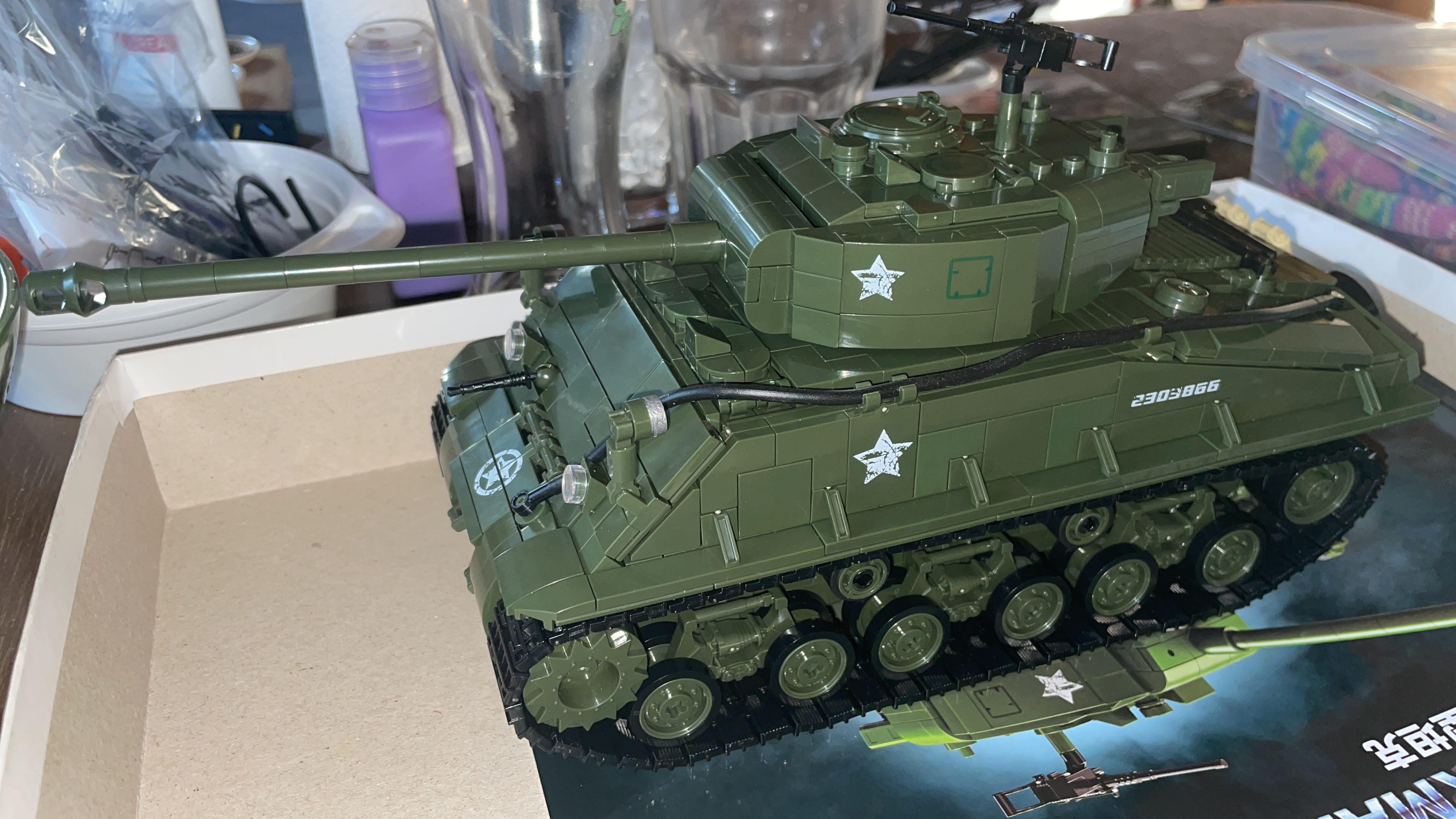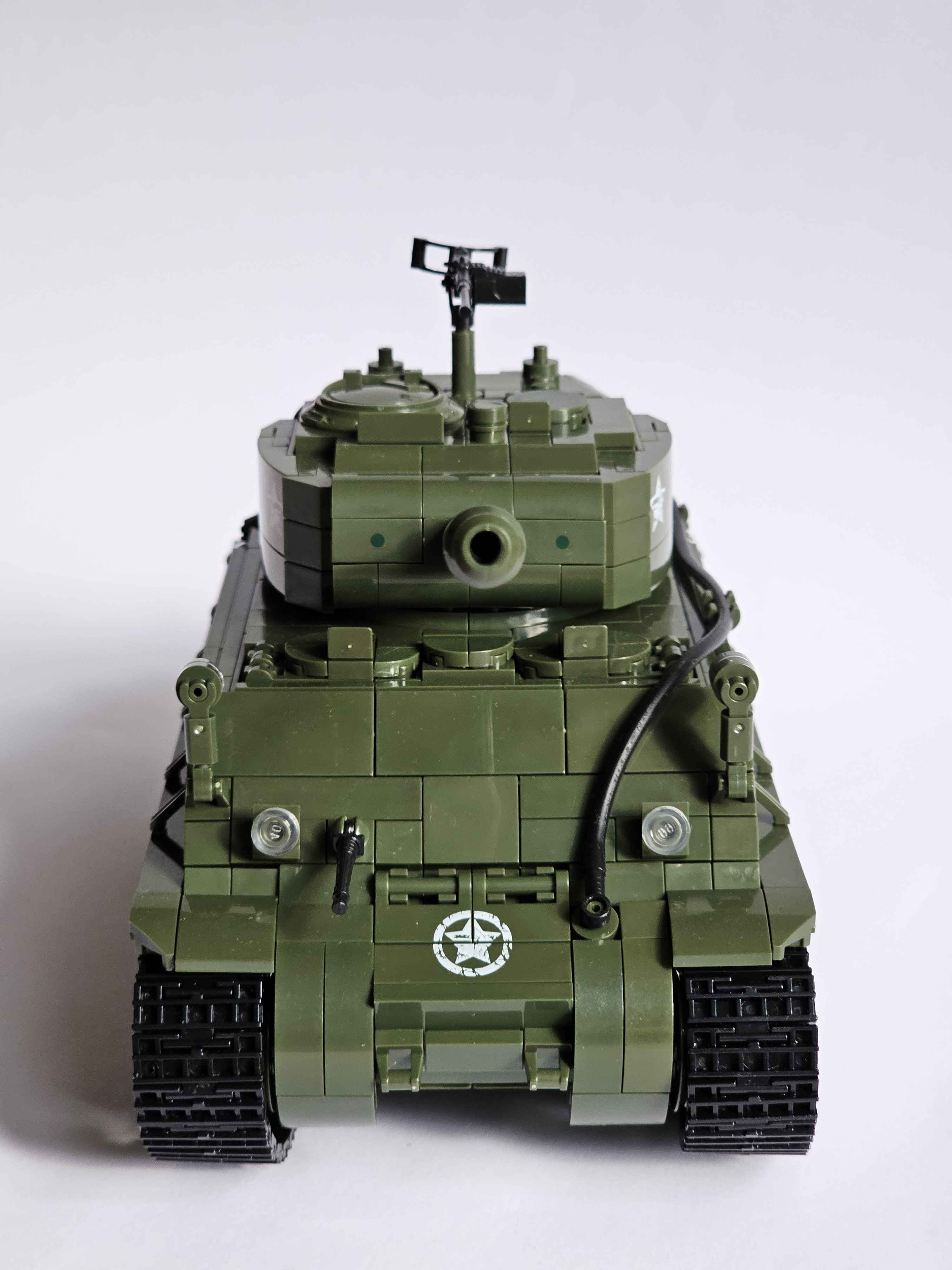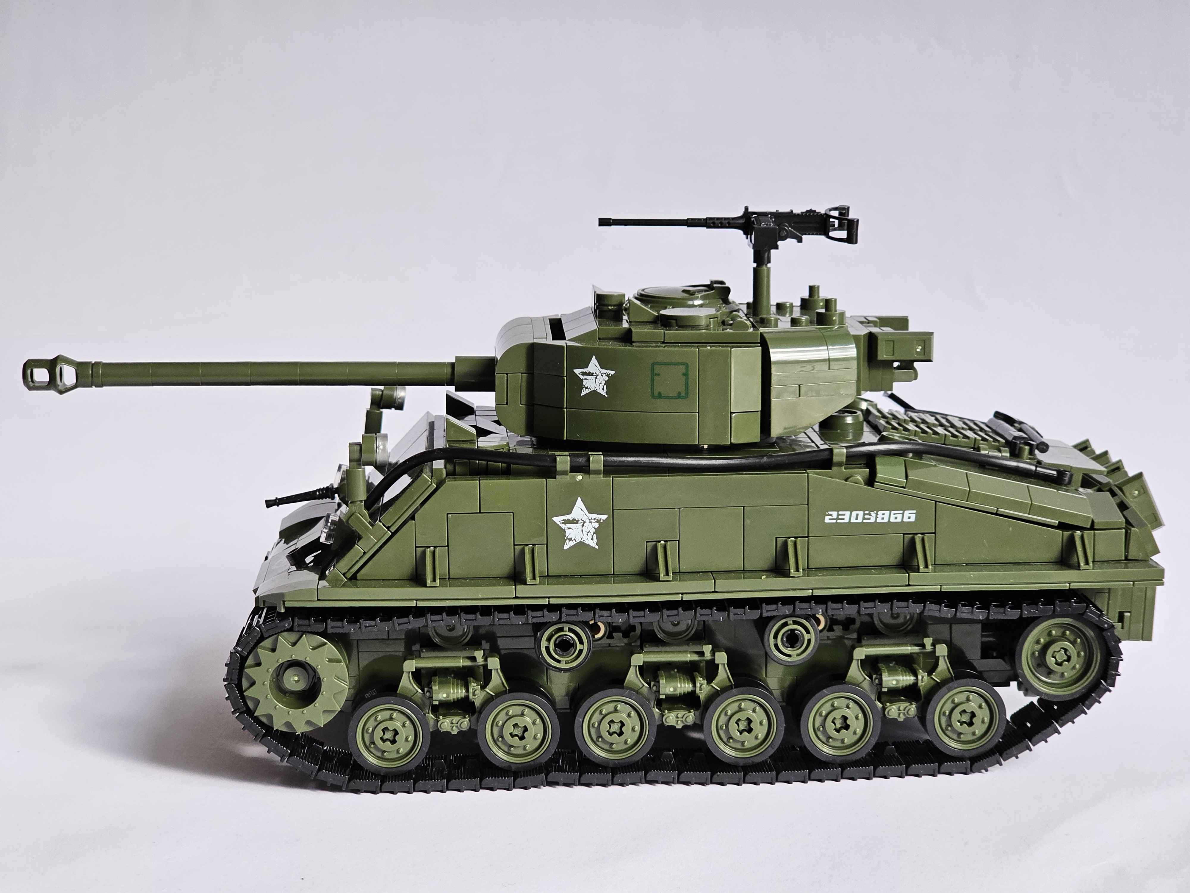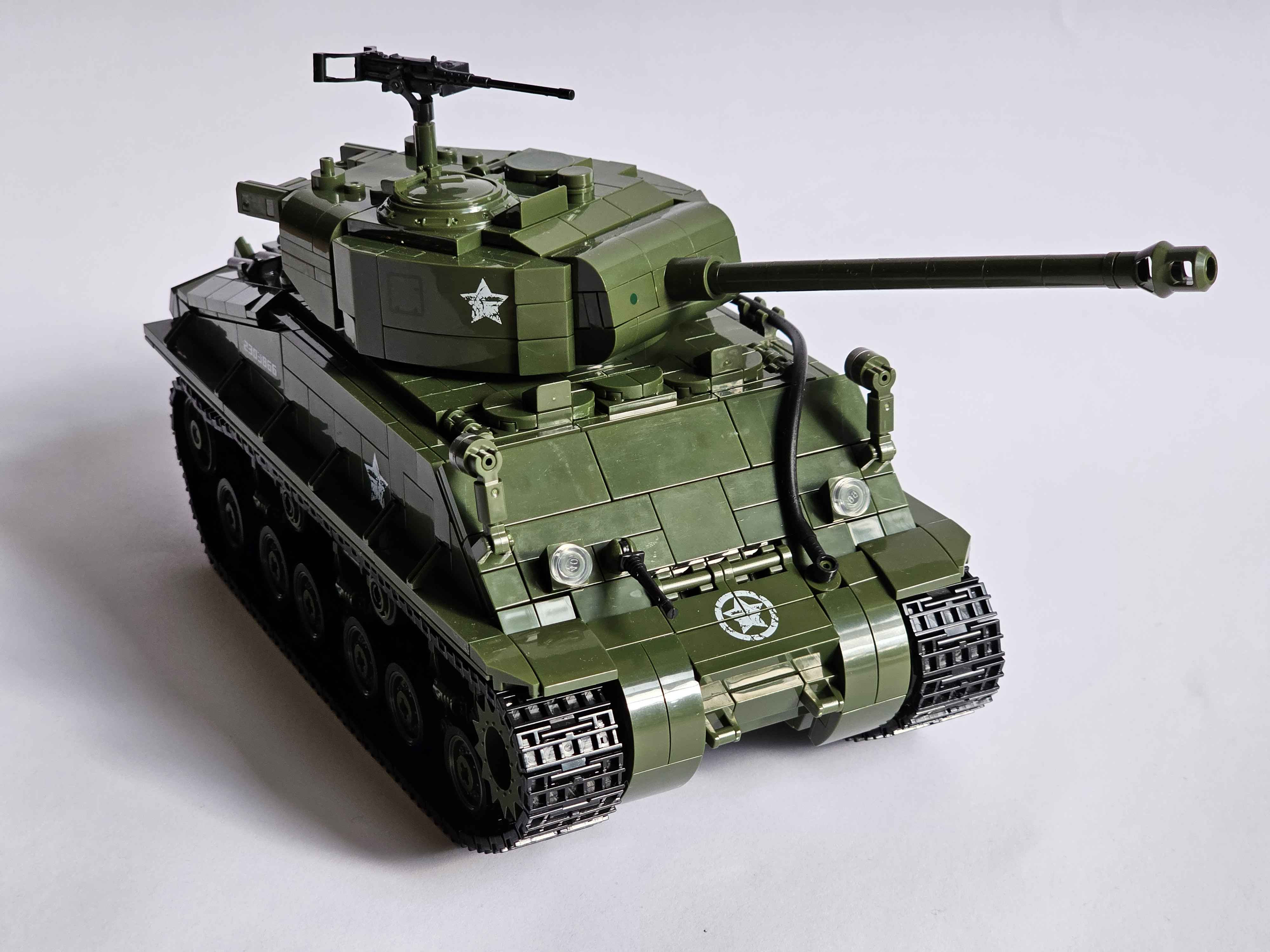 SuperB set from 12GO! The price is quite appealing given the amount of bricks and the size (its a little larger than 1:28 scale in my opinion). The brick quality was great with some special molded parts. Overall really great looking set, the best Sherman I built so far.