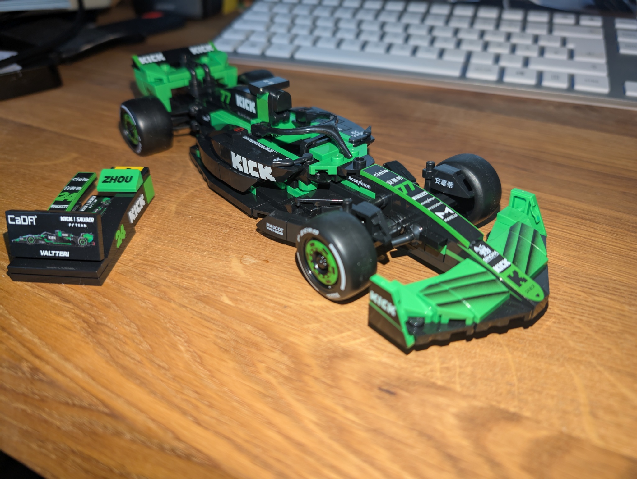 Maybe one of the best CaDA-sets I build so far. The sets seems not cheap in comparison with Lego Speedchampions, but it is definetly worth the money. In some steps the constructions starts very fragile, but after finishing the parts the whole car is very sturdy. The car is slightly bigger than the one from Denmark and a minifigure would fit perfectly - unfortunately the set comes without minifigure - the only "negative" thing I can point out - especially because there is a pixelated one to see in the product picture - btw. thanks for that LEGO. Every decoration you can see in the pictures is PRINTED, there are no stickers in this set. You can choose between two cars, from Valtteri Bottas and Zhou Guanyu. All parts with printings which are needed to display one of these cars are included. That means you will get more printed spare parts than Lego has in his McLaren F1 car from 2023. From my side a full recommendation for F1- and buildingbrick-fans!