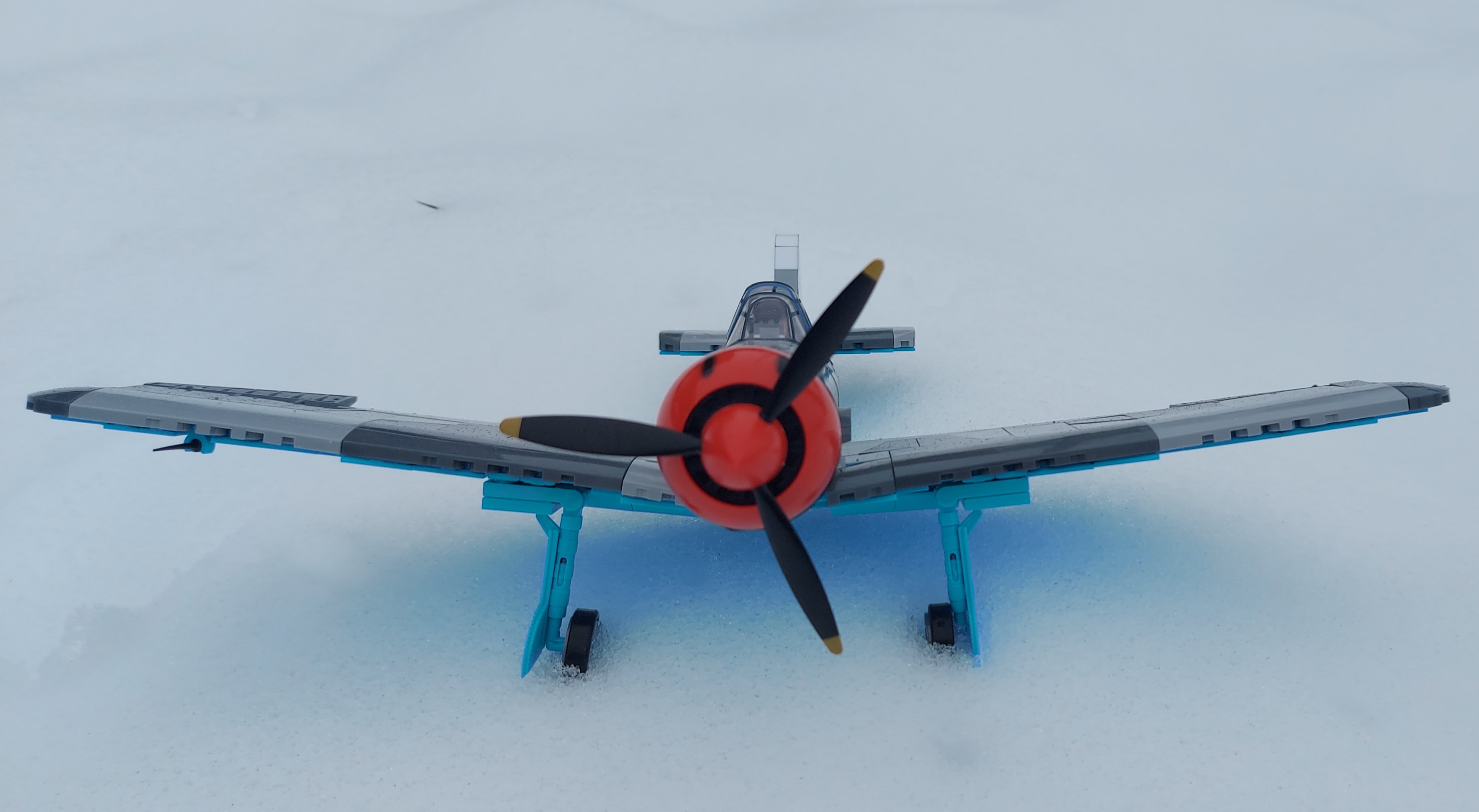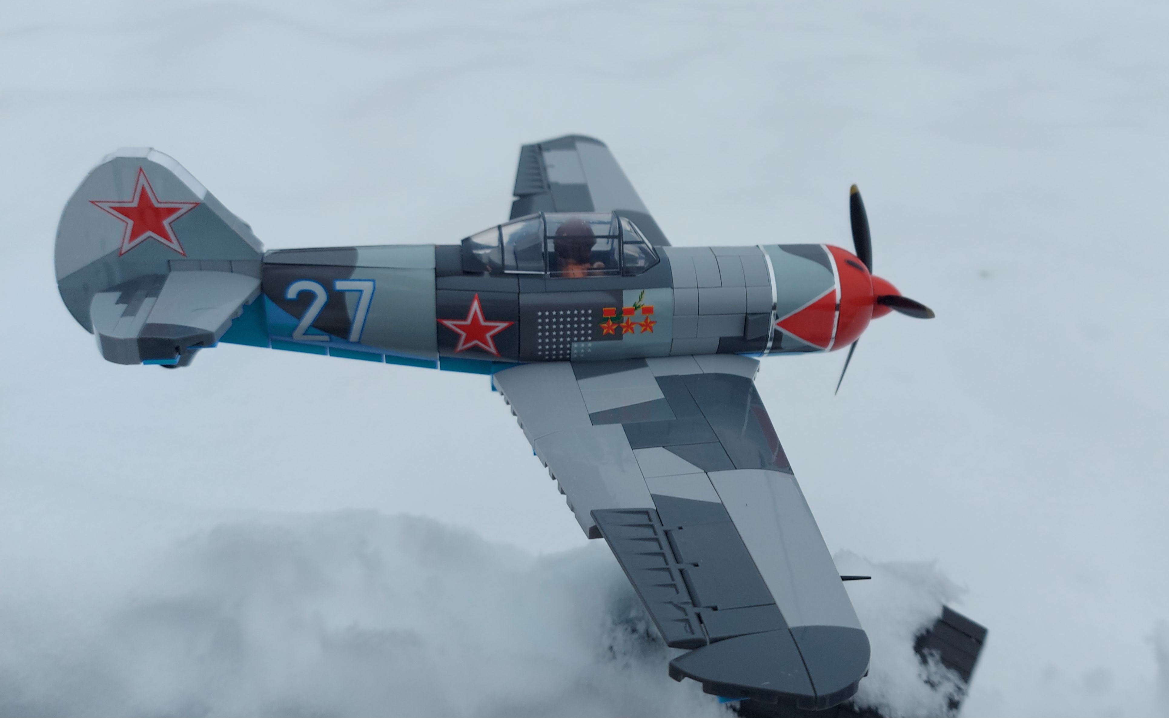 Somewhere over the eastern front in winter...a quan guan la7 fin patrols the snowy wastes.a cracking build with only a few minor niggles in the build.had to scrape a couple of bricks to fit in the central fusealage and the cockpit doesnt quite fit when the pilot is in.worst part of the build is the stickers(i hate stickers).3 figures with kit(groundcrew,pilot and a paratrooper).if qg start printing their aircraft then it would be almost perfect