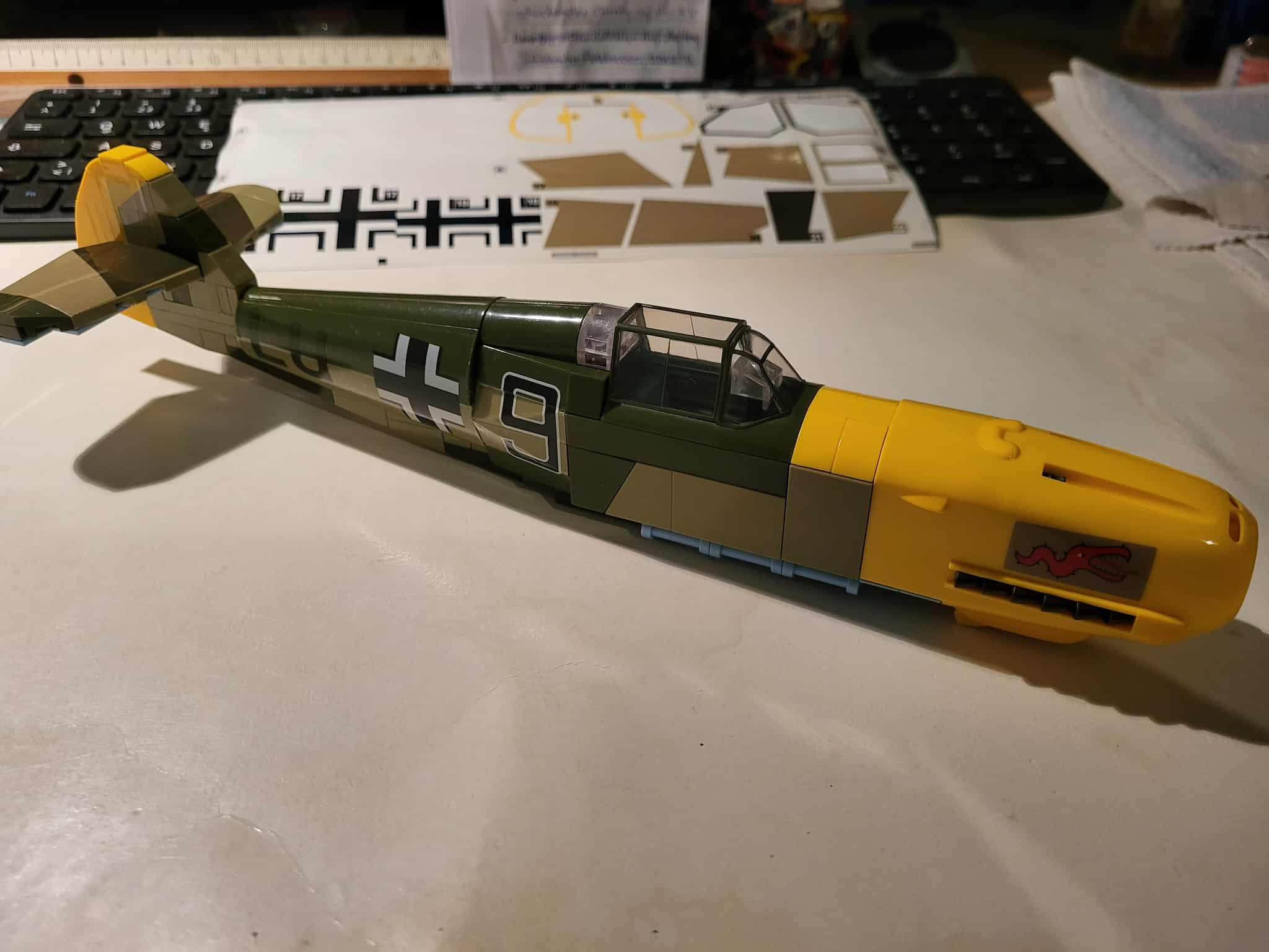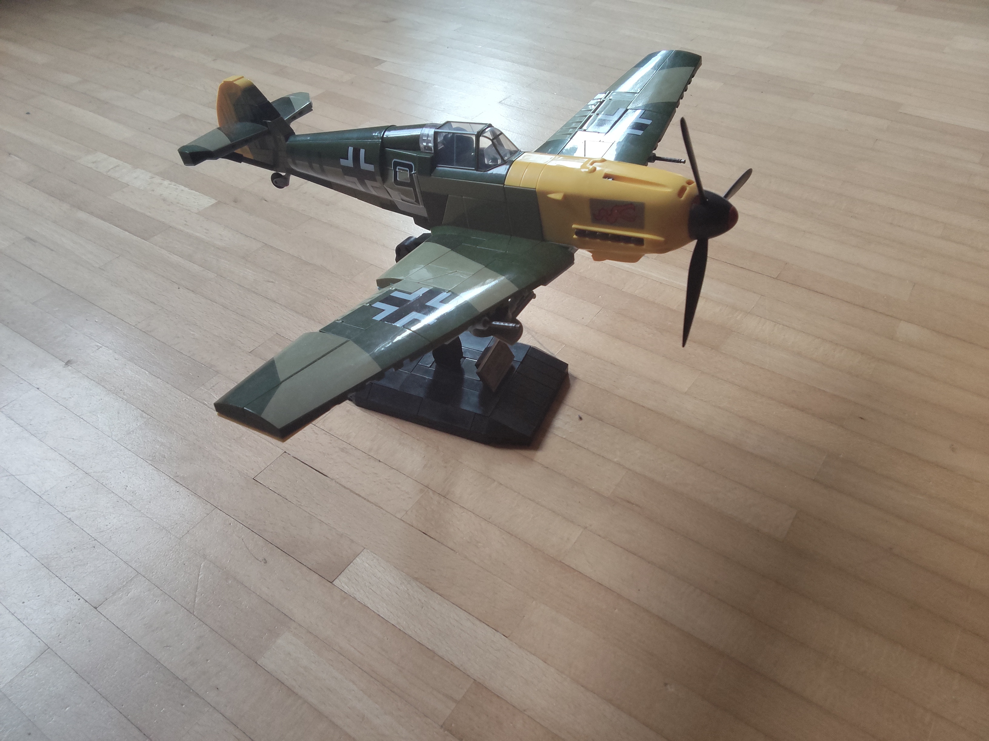 Sehr gelungene Modellierung von Me109. Die Sticker war nicht einfach aufzubringen. Aber es sieht sehr gut aus.
