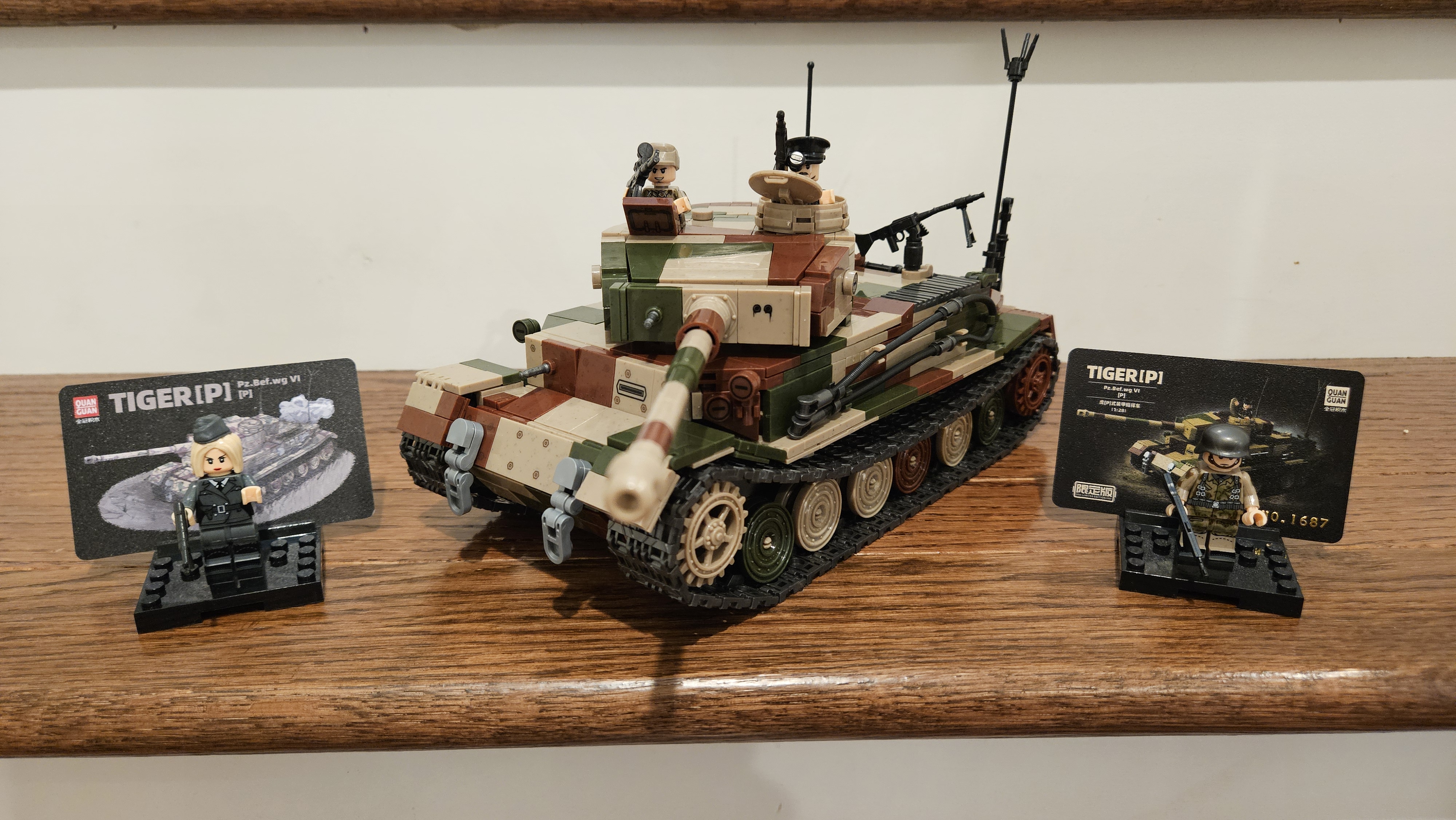 Customer Reviews Ric*******rkas Ric*******rkasFinally a Porsche Tiger! This is my first Limited Edition set from Quan Guan, loved the detiails on this set, it's not the most stable set to be honest, but still holds together just enough. Super detailed, great brick quality from QG. I will try the regual version later!            Clau*********rsano Clau*********rsanoUno dei carriarmati più difficili da montare, anche se la cura dei particolari è come sempre eccellente. Purtroppo la sua forma reale lo rende difficoltoso nel montaggio.    *P *PI was pleasantly surprised by this set as it is my first non-Cobi tank. Brick quality is about 99% the quality of major brands like Cobi and Lego. I did run into 1 or 2 times when there was a loose fit between the round hollow plugs you use to join the female ends of 2 bricks. However, trying a different plug or piece often fixed this issue. There are a couple of fragile areas on the vehicle, mainly the "cheeks" of the hull next to the drivers positions, which were a pain to get seated properly. Did not have to use any glue. No major pieces missing except for all of the tools (shovels, etc. which are to be mounted to the vehicle) were missing from my set. There were a couple of small extra pieces and plenty of extra plugs. Overall a great bargain for the size and detail of this set. I would definitely consider another Quan Guan set over a Cobi in the future based on pure value per dollar spent.    Emi*******ugo Emi*******ugoLa mia esperienza non è del tutto positiva, ho avuto problemi nel montaggio, pezzi che non riuscivo ad incastrare o volanti che hanno rallentato di molto la costruzione. Un vero peccato per alcuni pezzi di colori diversi, che non sono riuscito a capire se sia per colpa mia, di quello che è stato messo nella scatola o per via delle immagini delle istruzioni che non si riesce sempre a capire il colore. Ma alla fine sono riuscito a finirlo e il risultato finale è soddisfacente.  Mik******ig Mik******igAlles top, schöner Bausatz, Gerne wieder    Mat*******orz Mat*******orzTolles Set mit klasse Optik. Quan Guan liefert hier sehr gut ab und ich bin begeistert. Das mit den Limitierten Editionen verstehe ich zwar nicht aber das Design und die beiliegenden Karten sind schon ein nettes Extra. Der Preis ist grade noch so ok den der Tiger P ist schon ne Nummer für sich und wirklich gut gelungen.    Kacpe**********ewski Kacpe**********ewskiFinal product looks amazing far better than Cobi due to molden parts. Brick quality is almost on Cobi level (got few loose bricks but they were supported by other bricks that surrounds them so it's fine and stable). Few design choices are annoying in bulding so I had worse building experience compared to QG Tiger II. Overall 9/10  Hel*******sch Hel*******schEndlich ein Tiger P :) Ich pers. finde das Set ist sehr gut gelungen. Die Steine Qualität ist auch nicht typisch QuanGuan gewesen, nein Besser. Ich kann das Set nur weiter empfehlen  Alb*******ERCQ Alb*******ERCQThe tank looks really nice, I'm glad to have found this set. It is very beautiful with a full interior and enough place for a driver and a machine gunner inside. I recommend it.  Eve*******rld Eve*******rldI like that they finally came with a tiger p and as always the kit is very good looking
