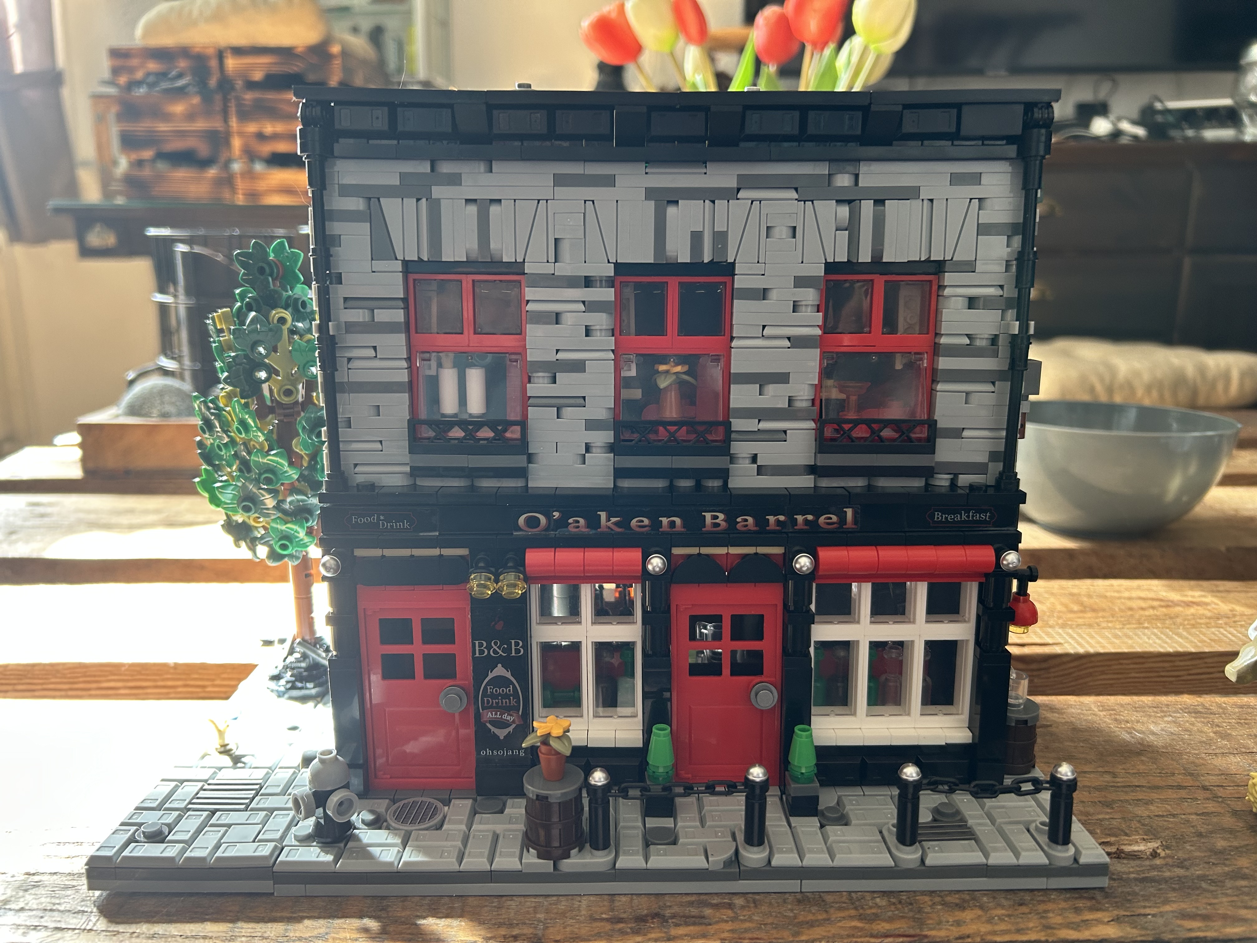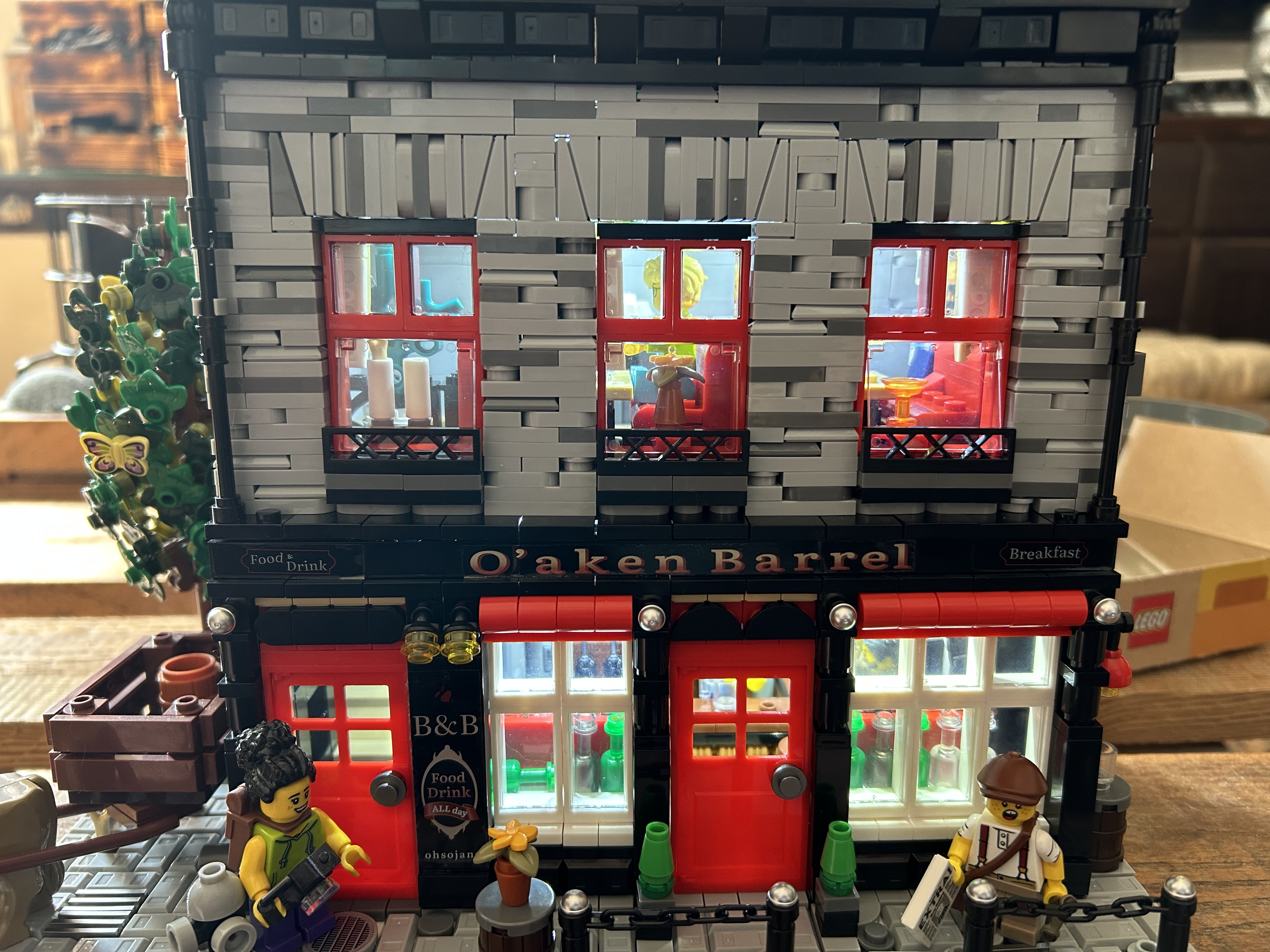 Kurzer Baubericht zu Xbert 66054 - O‘AKEN BARREL Ich habe für das Set inklusive Porto rund 50€ bezahlt. Es wurde mir empfohlen und ich wurde gebeten etwas dazu zu schreiben. Das Set hat ein originales Vorbild, ich finde, es ist sehr gut umgesetzt. Das Set hat 2368 Teile, kleine Teile! Und die Bautechniken sind nichts für Anfänger und mal nichts für Grobmotoriker. Sehr gute und übersichtliche, leimgebundene Bauanleitung. Die Bauanleitung lässt keine Fragen offen, auch die Beleuchtung wird vernünftig erklärt. Die Steinequalität ist sehr gut, einziges Manko, Aufkleber, es gibt keine bedruckten Steine. Die Aufkleber sind auf Folie gedruckt und die Qualität ist eher semi. Ich hätte sie auch weggelassen, aber wegen der Vollständigkeit habe ich sie aufgeklebt. Die Beleuchtung ist okay, deutlich besser als das was Mould King Brick in seine Sets packt, aber kein Vergleich zu Lumibricks ehemals Funwhole. Vorteil ist bei Xbert, die Kabel und Stecker sind robuster. Leider laufen die Kabel direkt und durch das Gebäude, das hätte man mit längeren Kabeln anders lösen können. Obwohl ich ja aus Gründen keine Gebäude mehr bauen wollte, zumindest aktuell nicht, bereue ich den Kauf und Bau nicht. Ich habe noch zwei weitere Gebäude von Xbert, die ich in der nächsten Zeit bauen will. Also ich kann im Fazit sagen, es lohnt sich, vor allem für den Preis. Da das Set ohne Figuren ist, habe ich mal ein bisschen in meinem Fundus gewildert und mit Tieren und Figuren aufgefüllt. Ich hoffe euch gefällt es. 😉