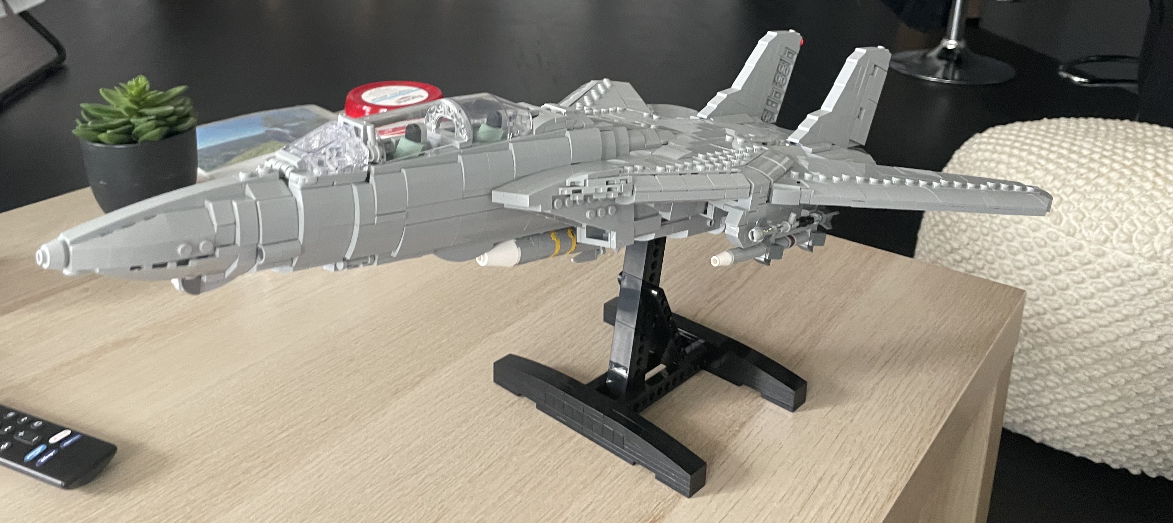 Awesome set! Great build! Wings fold-in -- comes with a stand! (Instructions for stand not included). ~2 of the Missile "rods" are flimsy and don't properly hold the missile in place. Still a fantastic looking set and a great build!