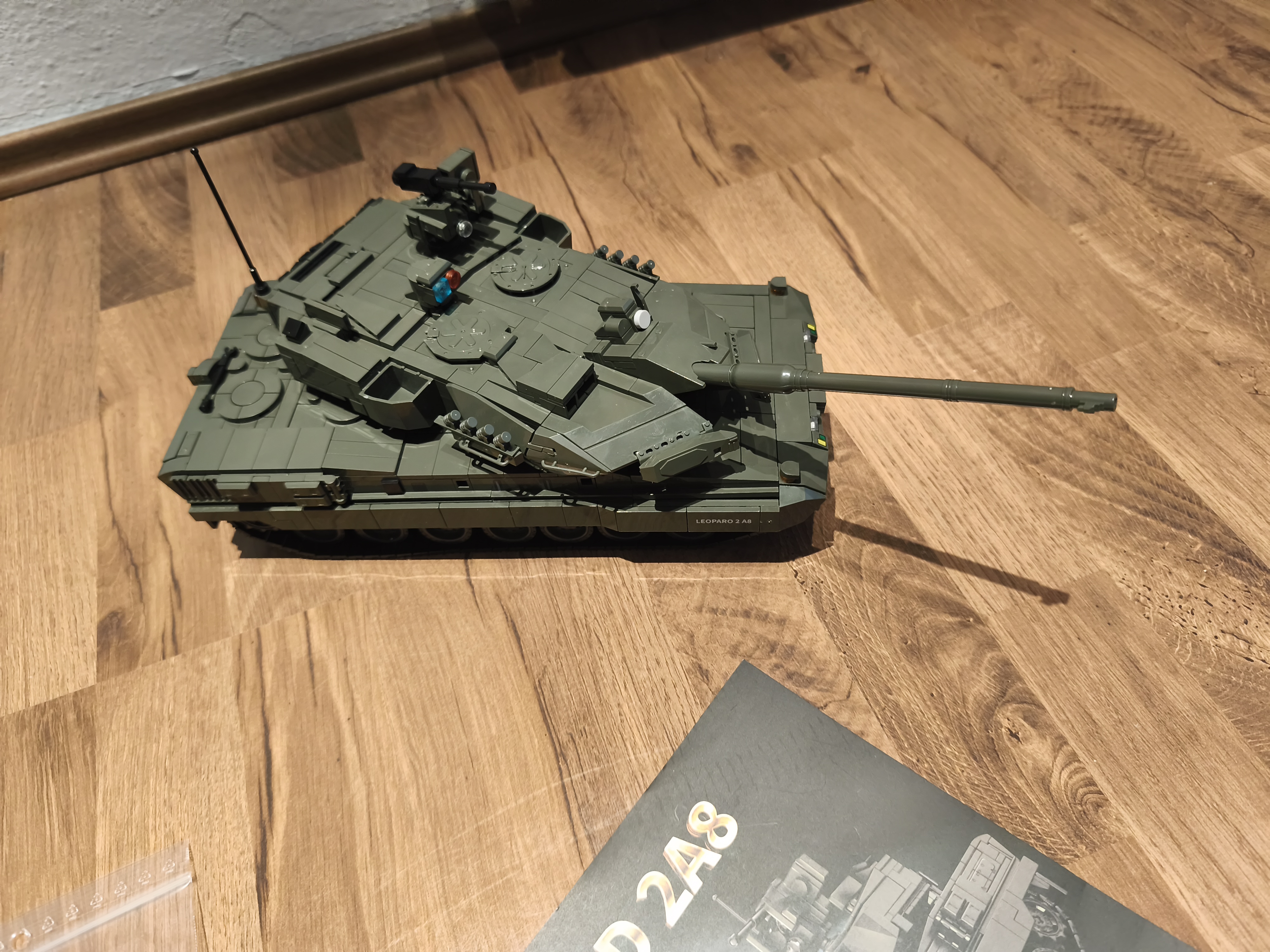 Der Panzer ist ein formschönes Modell. Es wurden viele größere Formteile verbaut. Das hat mit dem klassischen bauen mit den üblichen Teilen nichts mehr zu tun. Die Bauanleitung ist in Ordnung, bei farbgleichen Teilen muss man allerdings genau hinschauen. Es bleiben jede Menge Teile übrig. Für die motorisierte Version gibt es einen extra Beutel mit den benötigten Teilen. Figuren gibt es keine. Auch die Kanone besteht aus zwei Formteilen. Das Laufwerk läuft ohne Probleme.