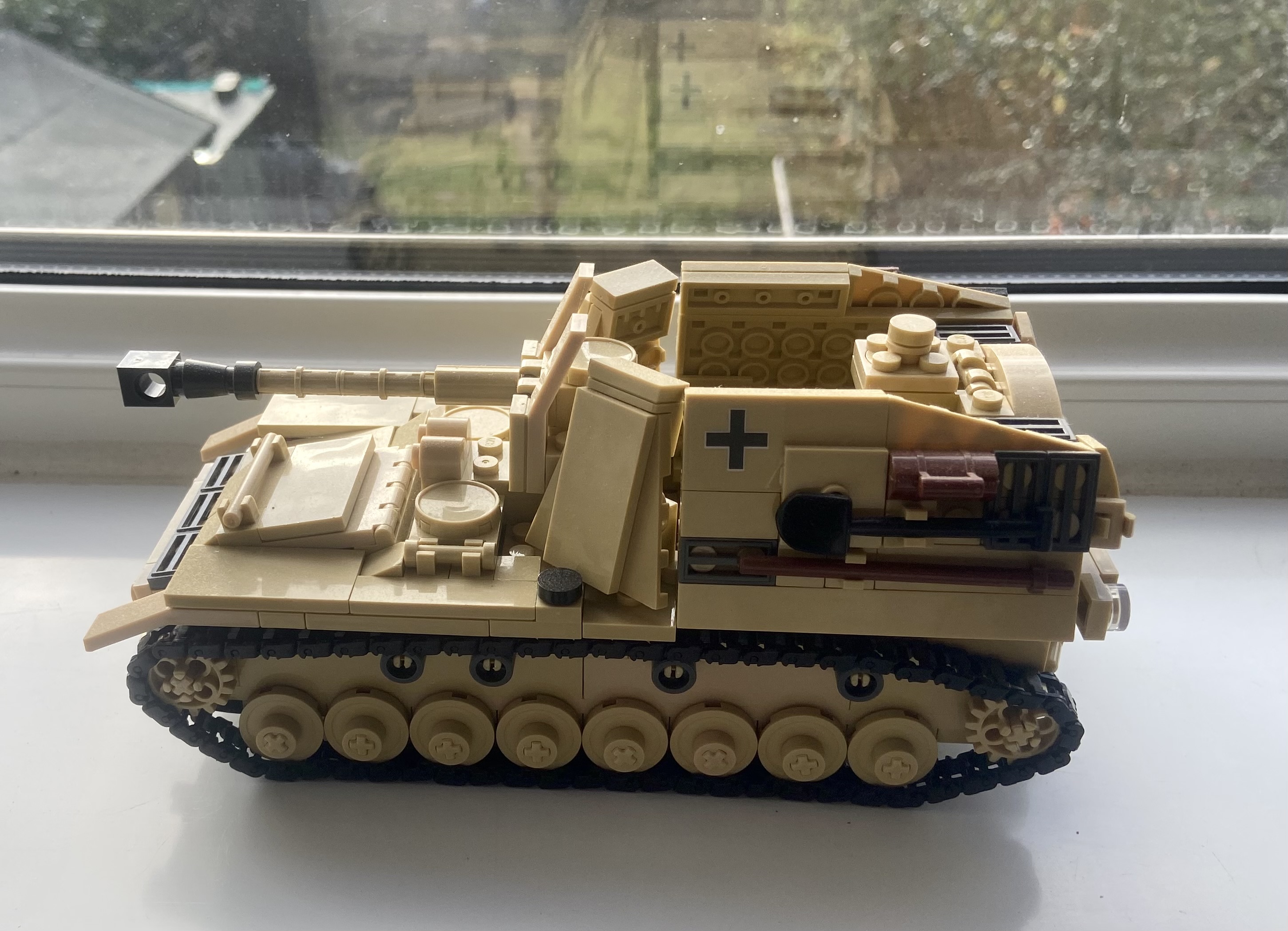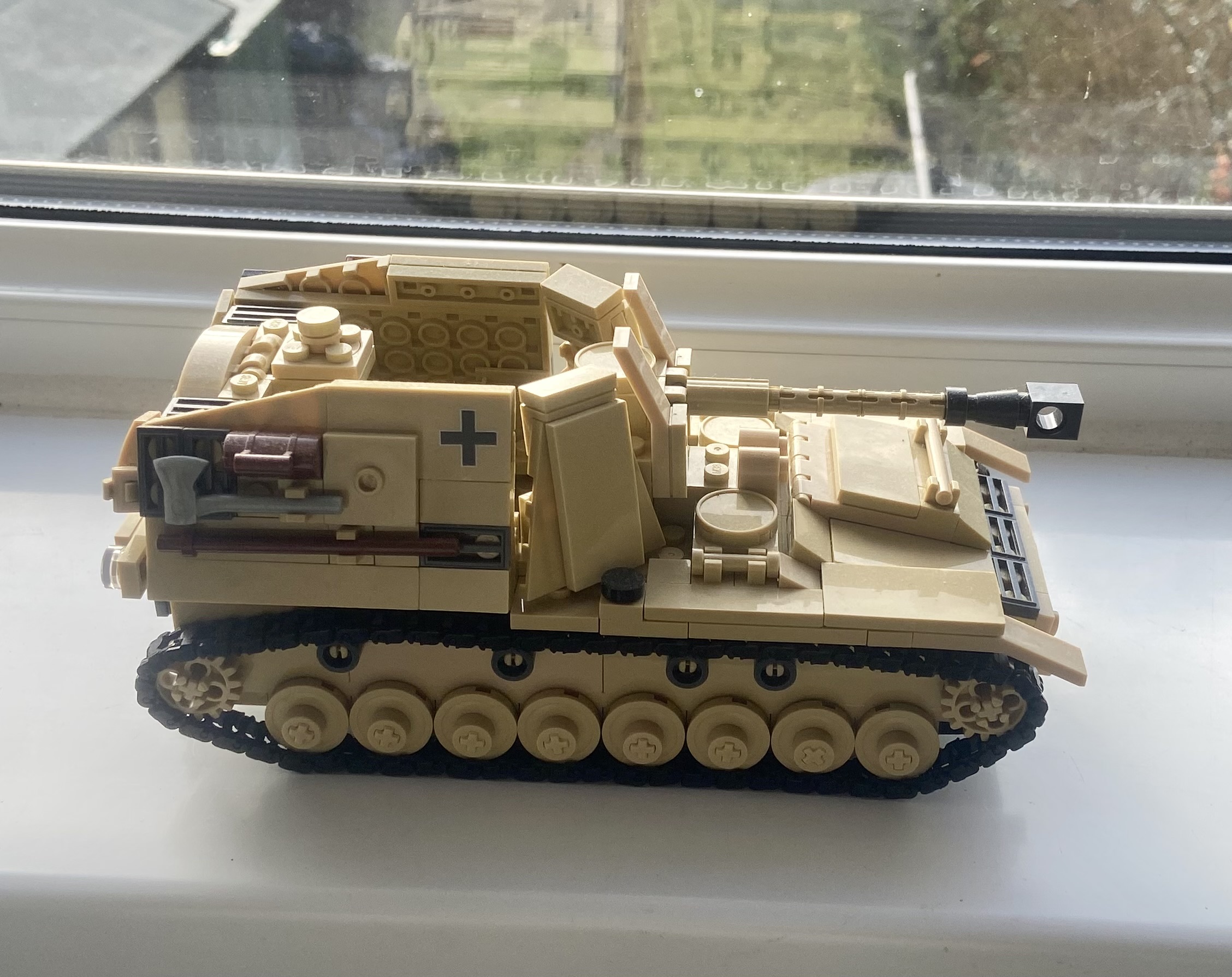 Nice kit, easy afternoon build with good results. Kit can be built as a panzer tank or mobile antitank gun and I chose the mobile gun. Easy to follow instructions, good fitting blocks-marvellous 😃
