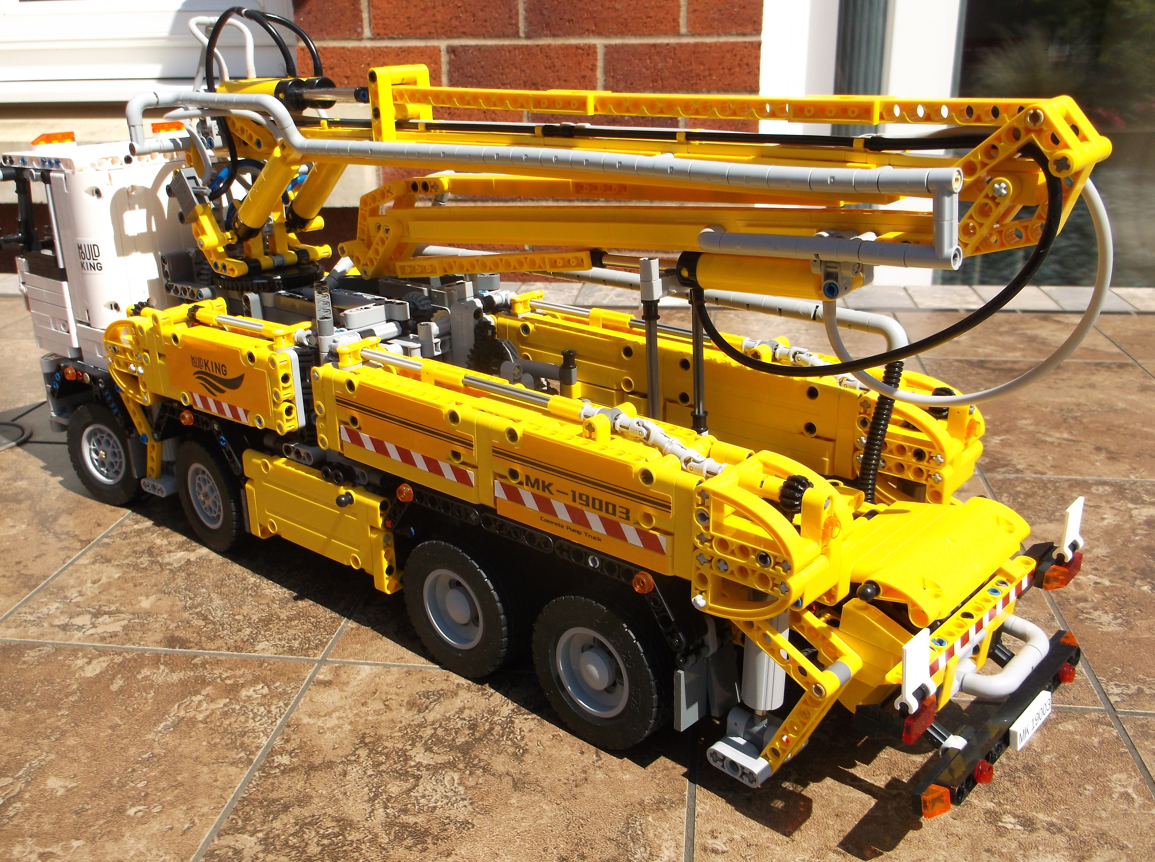 The set is fully packed with technical functions! It is cramped with gears and switches, motors and pneumatics! It is impressive to see, whats possible with technical building blocks. Working suspension on all axles, driving and steering, synchronized outriggers, fully operateable crane. It is a challenging and rewarding build.
