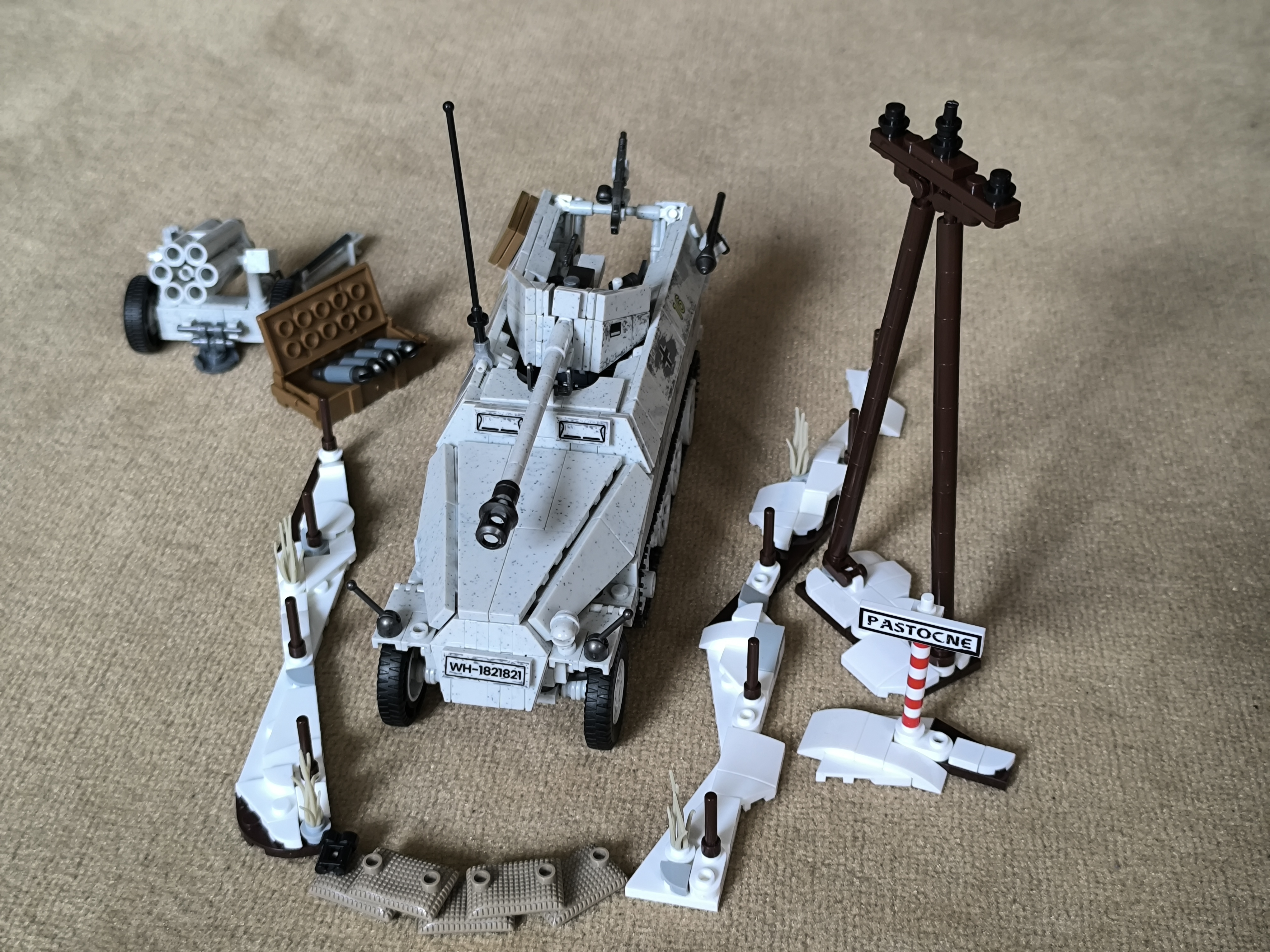 Das ist ein schönes Set. Das Fahrzeug ist gut zu bauen, die Bauanleitung ist gut dargestellt. Die Qualität und Klemmkraft der Teile ist dieses mal gut. Es gibt keine Sticker, alles ist bedruckt. Der Werfer ist sehr filigran und etwas schwierig zu bauen. Die Reifen sind merkwürdig gestaltet, die nach innen zeigenden Seiten sind offen. Es gab keine fehlenden Teile, es sind nur ein paar Kettenglieder übrig geblieben. Die Figuren sind durch die neue Konstruktion gut beweglich und unterscheiden sich von den bisherigen deutlich.
