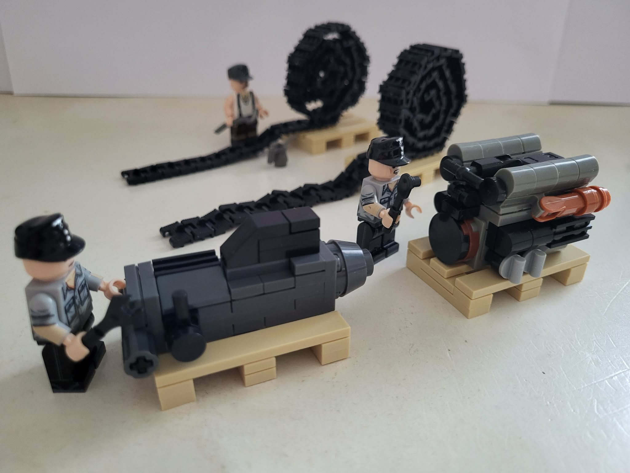 Overall a good looking model. Bricks vary a little bit in color, clutch power is sufficient. The molded parts give it a realstic look with much details. Very interesing building technics are used. Sadly the german crosses on the tank are stickers, everything else is printed. Since the turrent mg was missing I had to cut a bar off from a spare track piece, see attached images. Definitly will try more 12GO models in the future.