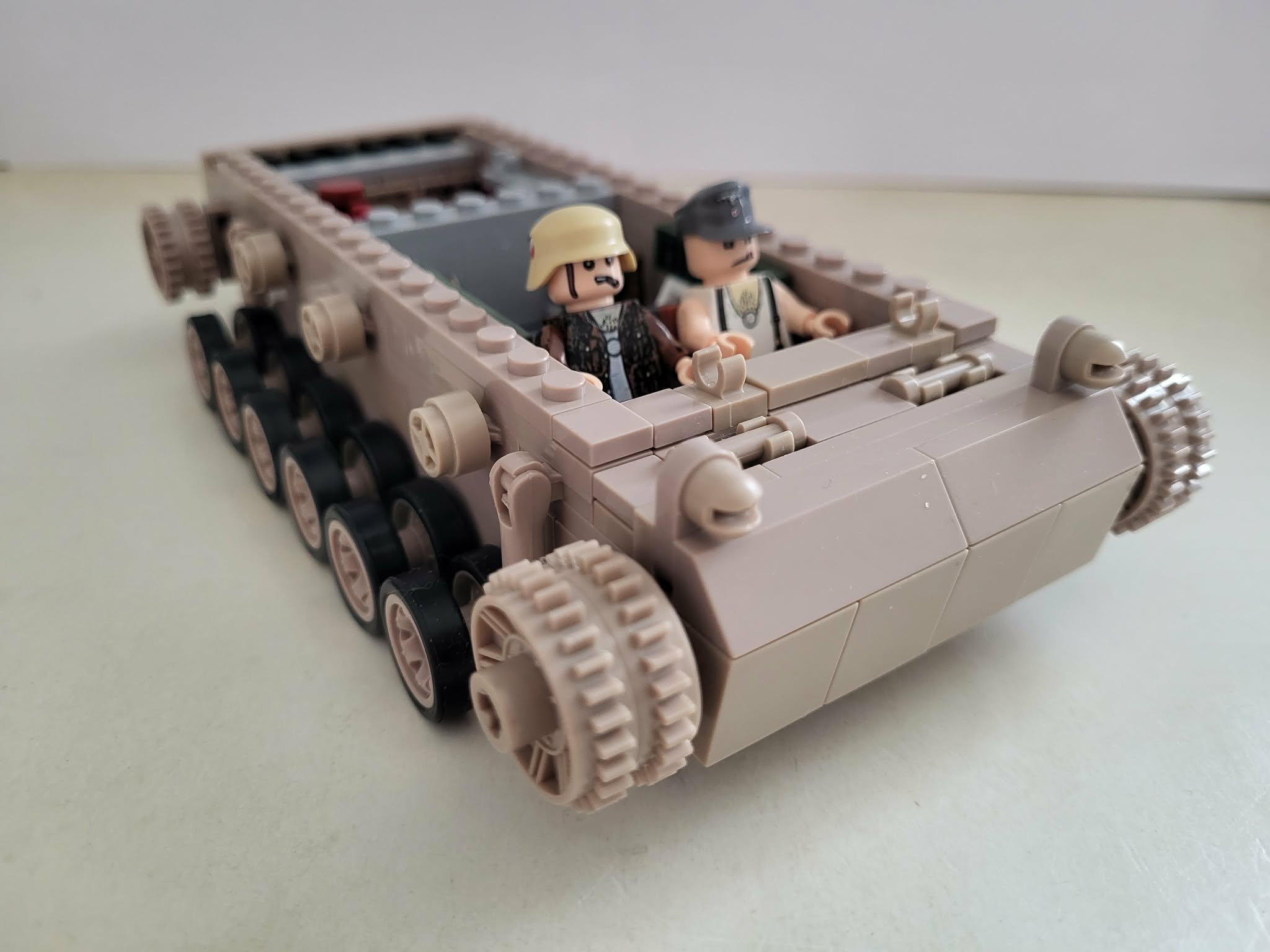 The tank is really nice and looks great with other WW II tanks from Quan Guan. It has an interior-design and can be opened within a few seconds. Unfortunately I can not give five stars because the quality of the stones is not as good as expected today. 90% are fine, but about 10% of the bricks are very hard to build in, eigther they have to much clutch power (in a few cases to less as well) or they are not centered. That means You need to rotade them to find the only direction in which they could be build in to the construction - but in some case this is not possible due to the shape of the bricks. It seems, that these bricks are produced with very old moulds :( At the end the tank could be finished with some own bricks, but the building fun suffers from the poor quality of only some bricks.