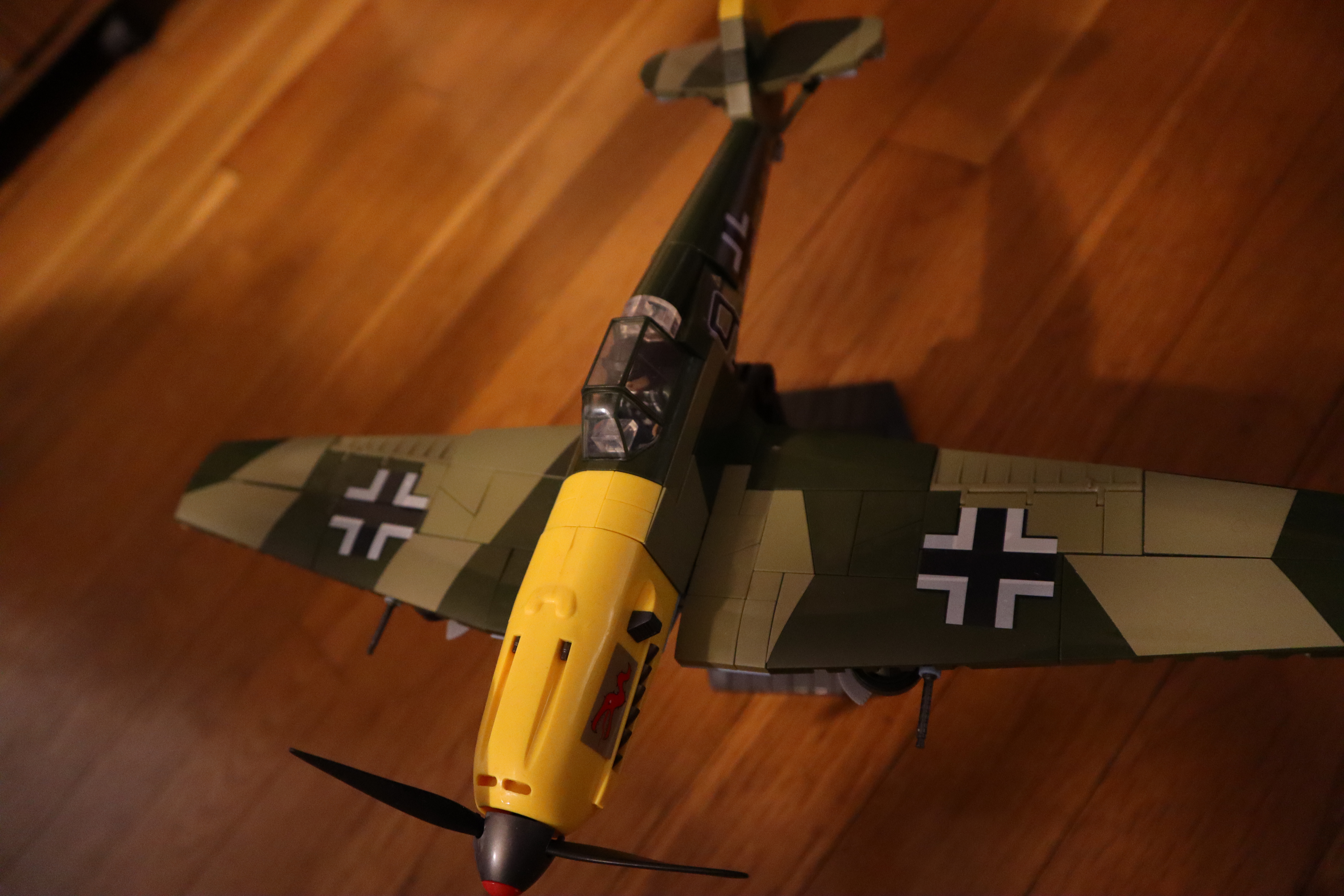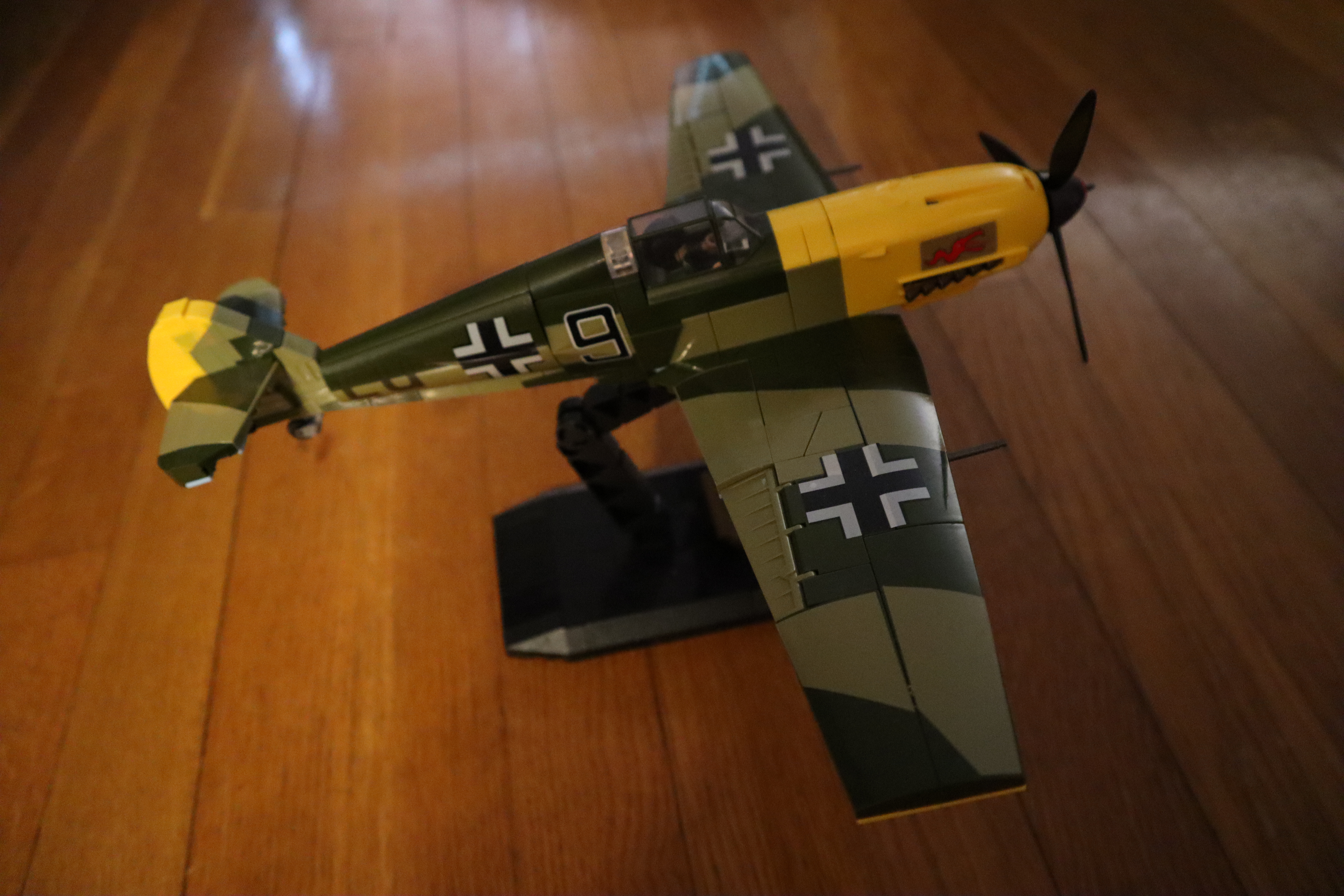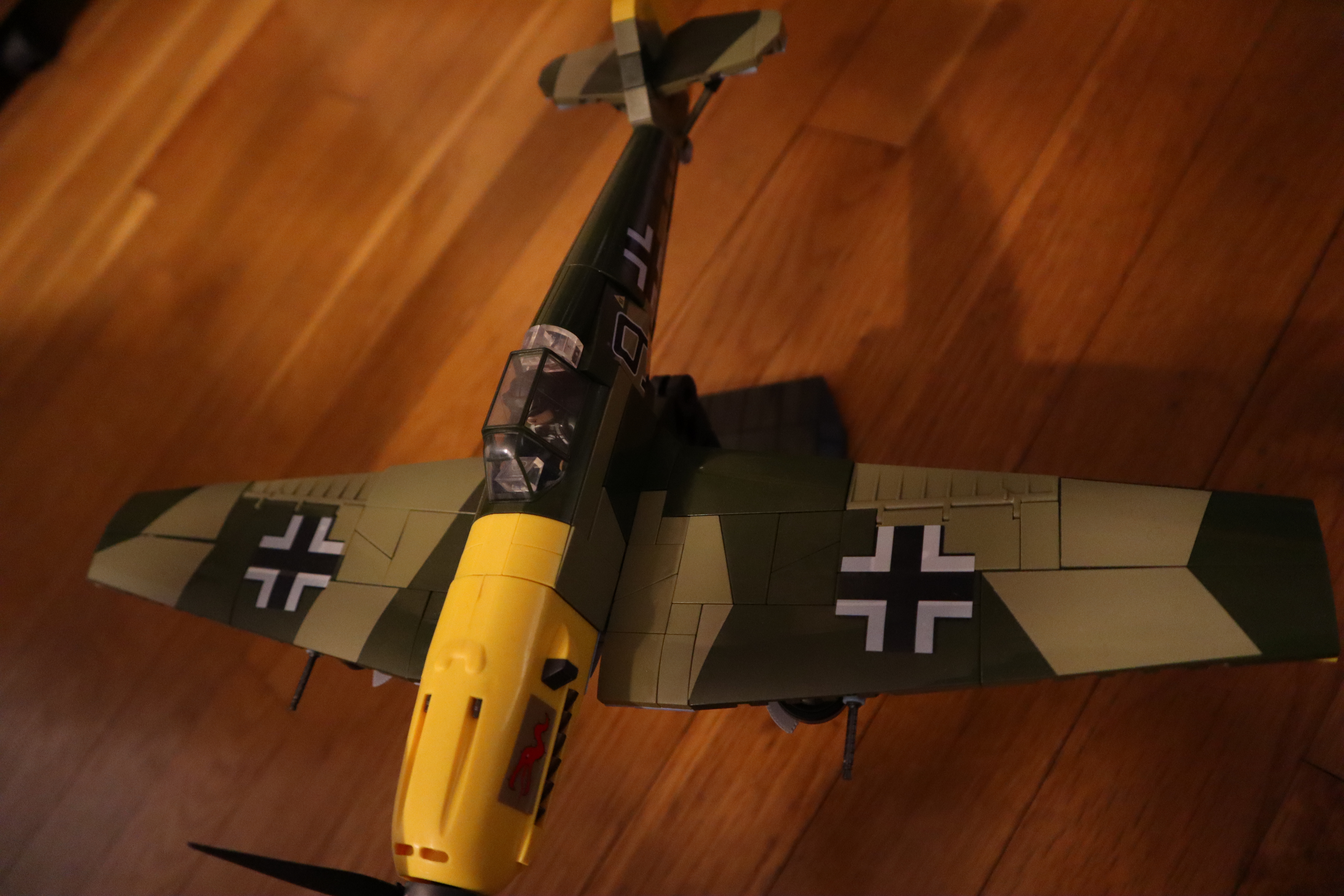 Sehr gelungene Modellierung von Me109. Die Sticker war nicht einfach aufzubringen. Aber es sieht sehr gut aus.