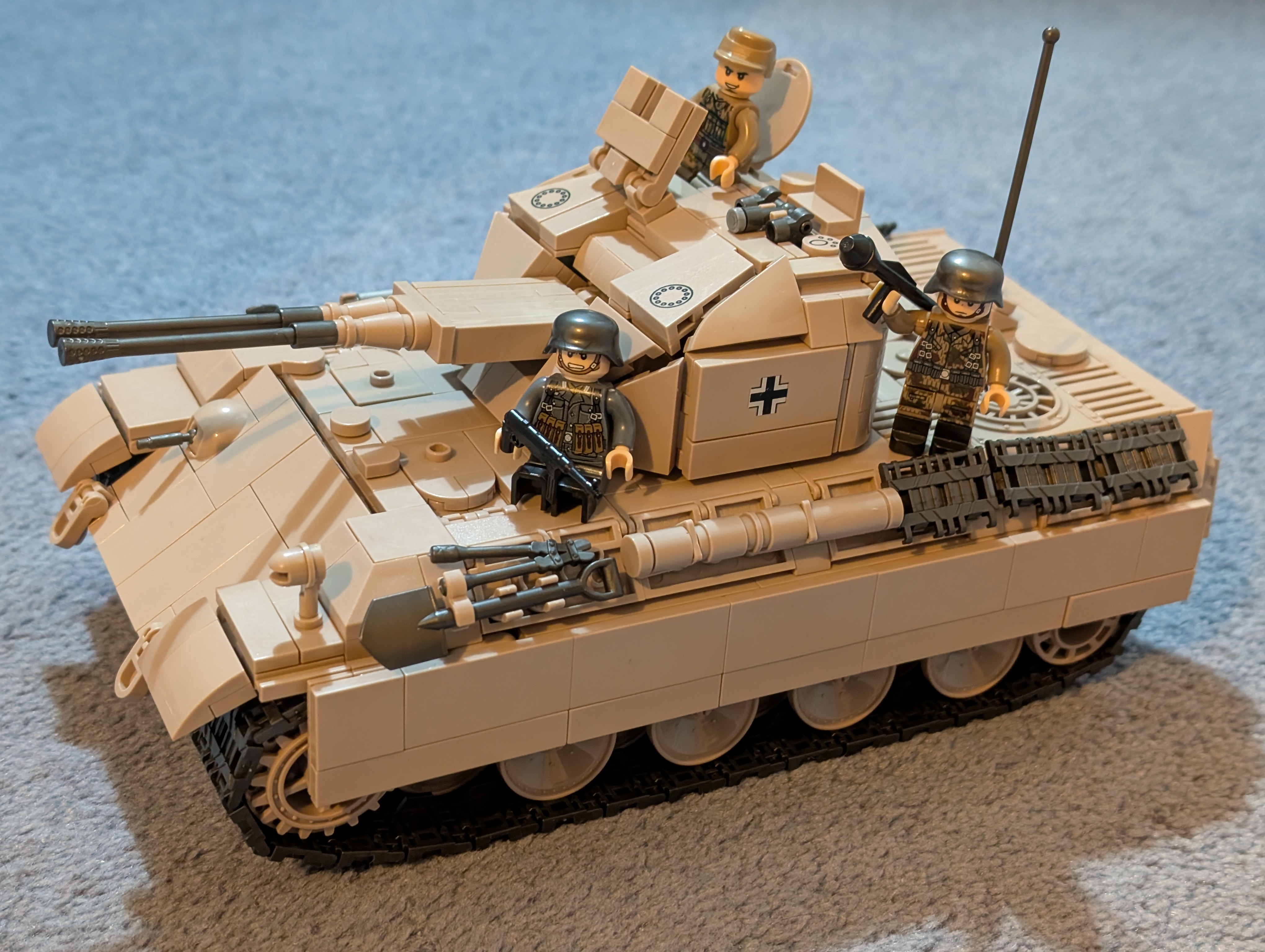 Really enjoyable build with lots of internal detail. The tracks run smoother than any other tank I've built - great design. Turret construction is a little tricky, but finished model is well worth the effort. No missing parts for the tank, but the commander was missing his hips and his hat was damaged (not that I'm too worried about that). Good quality bricks and very sturdy construction, aside from the guns. All in all an excellent, unusual model for a great price!