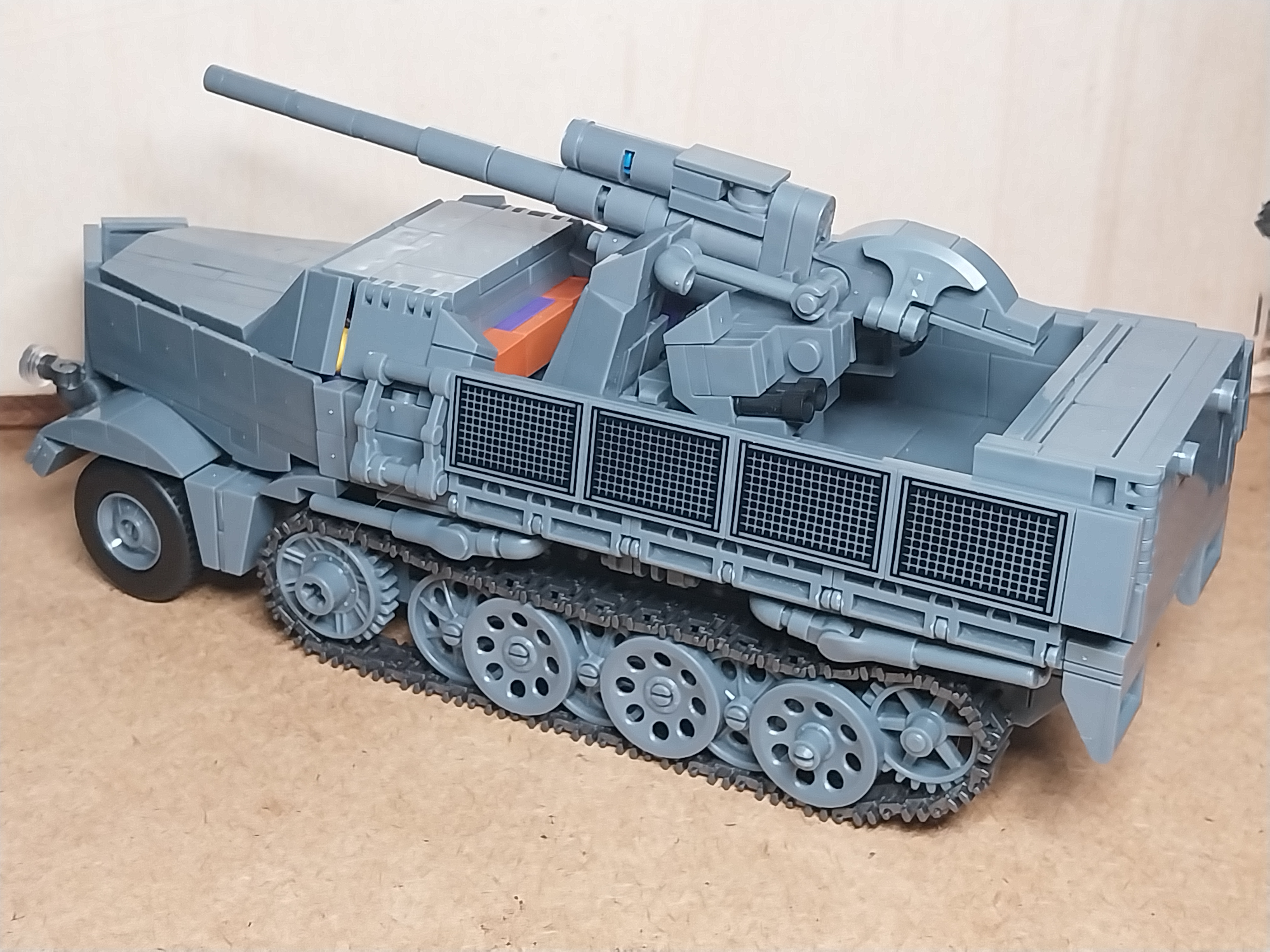 It was a pleasant build, that is surprisingly sturdy. ThirdParty started to use colorful bricks on the inside of models recently and on this one its very visible, it did help with the visibility on the inner construction tho. The Flak can me removed easily and the side flaps are adjustable.