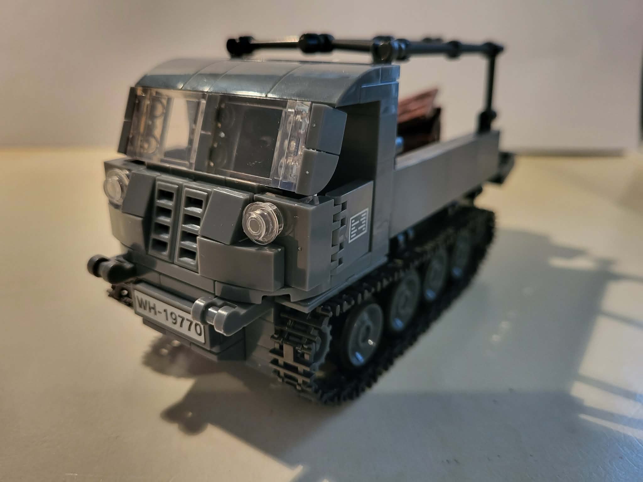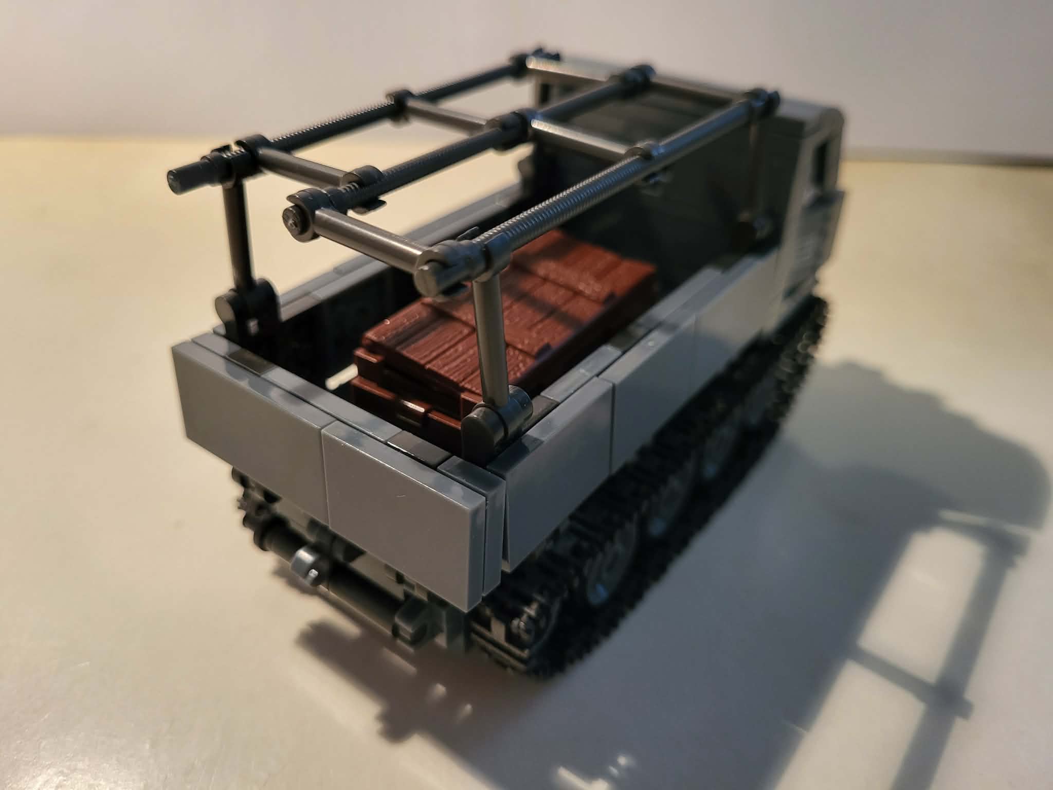 I recently bought the QG RSO/01 Crawler for fun. It's a nice little WWII model, though some parts are quite tricky to build, like fitting and assembling the tracks. A little trick is to lower one of the sprockets, position the track, and then attach the sprocket afterward. The frame on the loading platform is also a real test of patience. The parts and their clutch power are perfectly fine. A very nice bonus is the superbly detailed, wood-look crate, along with a variety of different ammunition. Therefore, the RSO is a really good addition to any collection, and at that price, you can't complain. But be warned, it's best to order this little vehicle as part of a group order, as the shipping costs for individual orders are higher than the model itself!