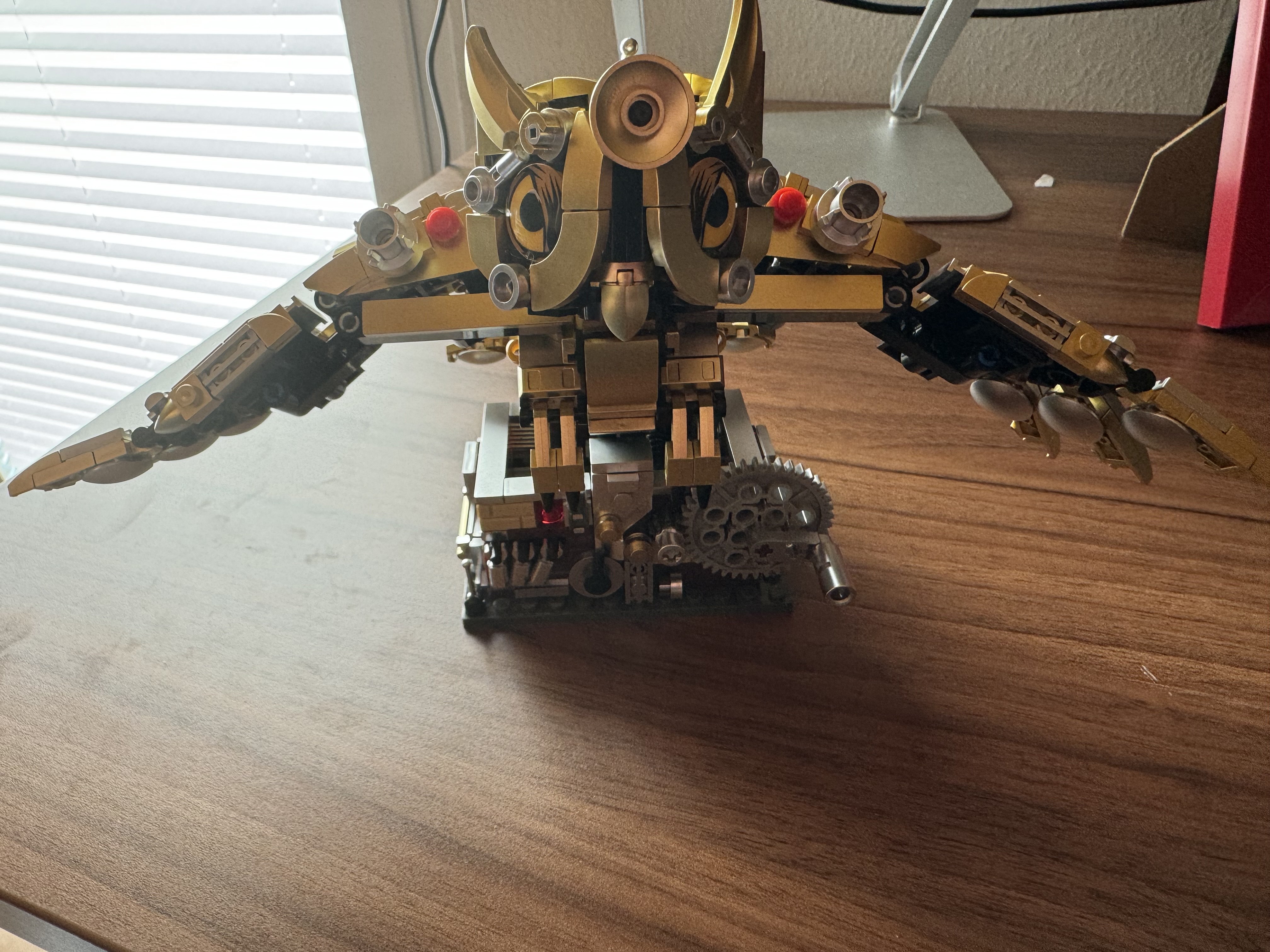 A great little set with loads of gold and silver pieces. Only 2 scratched plates in my bags. The mechanism works well and the wings flap like a real owl would flap her wings. Grip of the pieces is good and the owl head connection to the body is much, much more robust than the one from the Tuomu Steam DaVinci set.